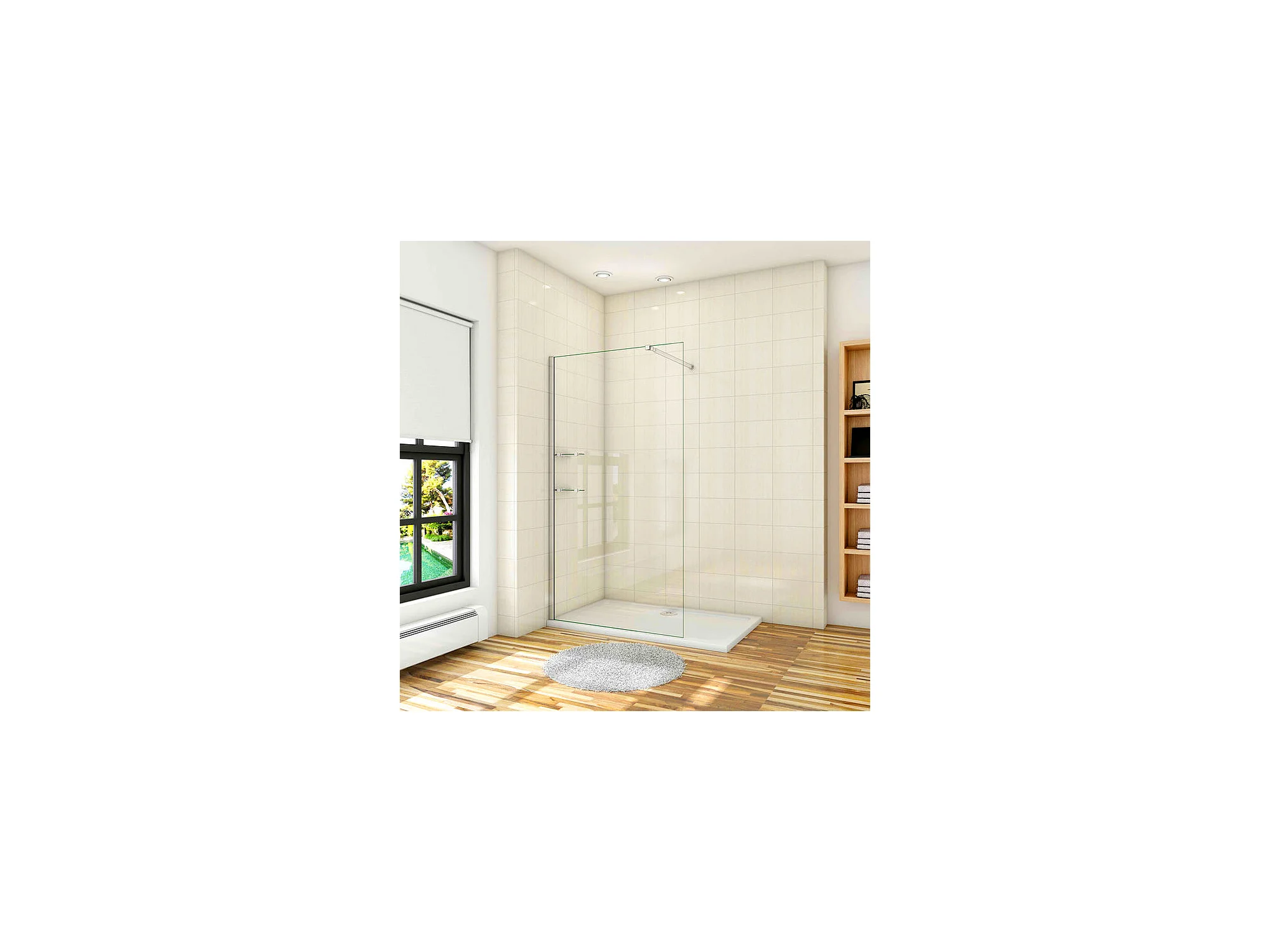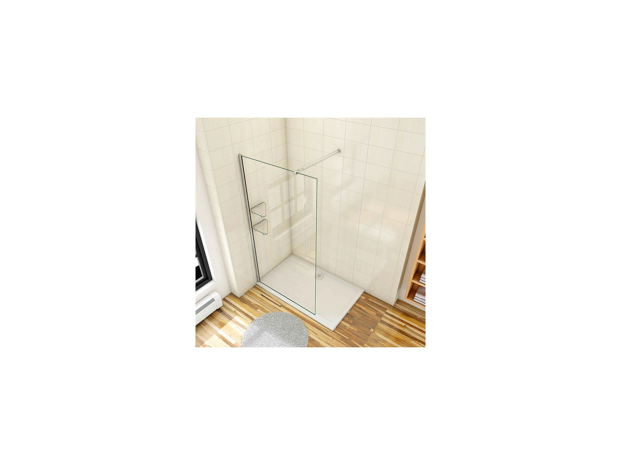 Paroi de douche à l'italienne 90x190cm avec étagères et barre de fixation 73-120cm en carré, en 8mm verre anticalcaire