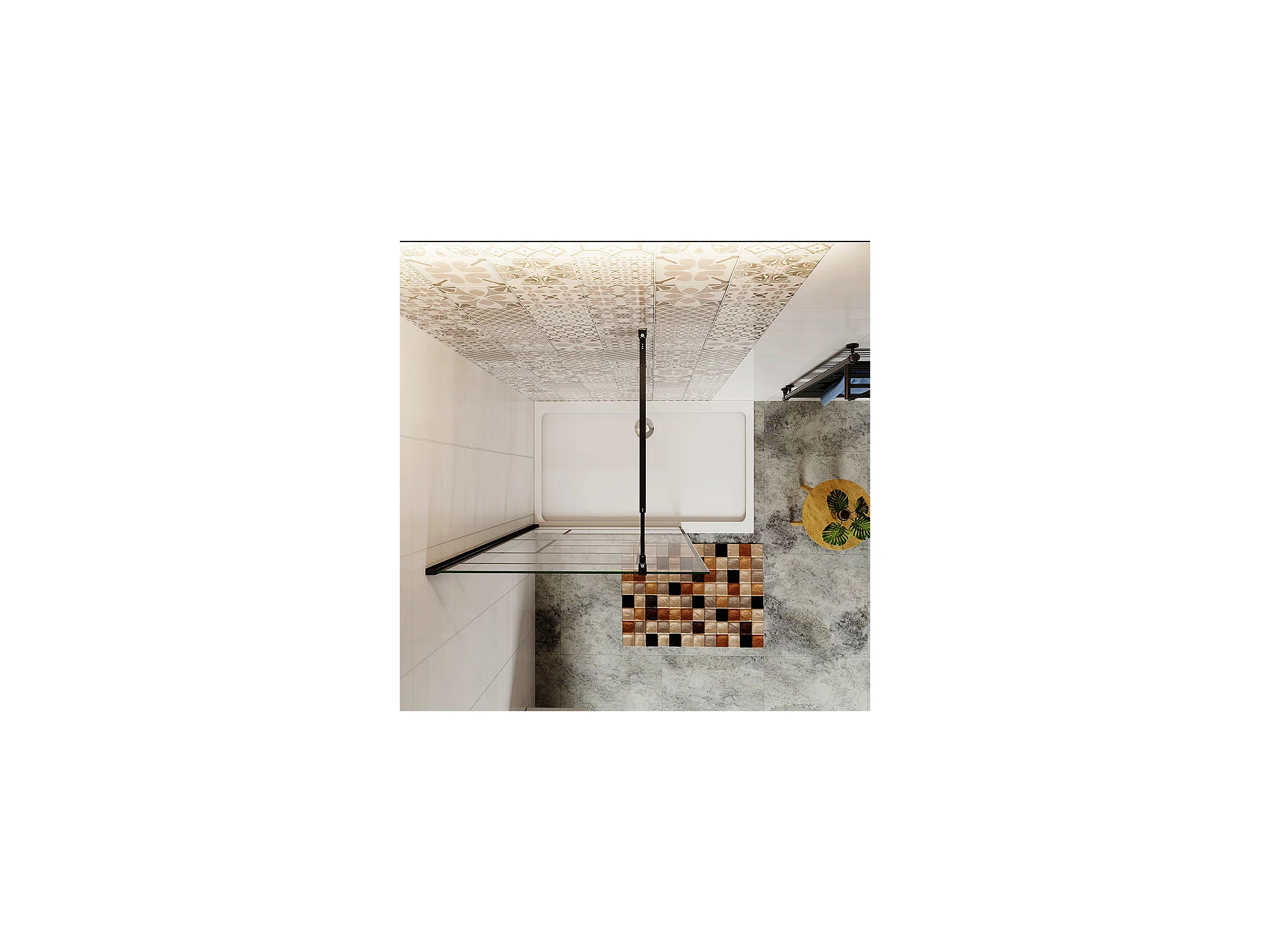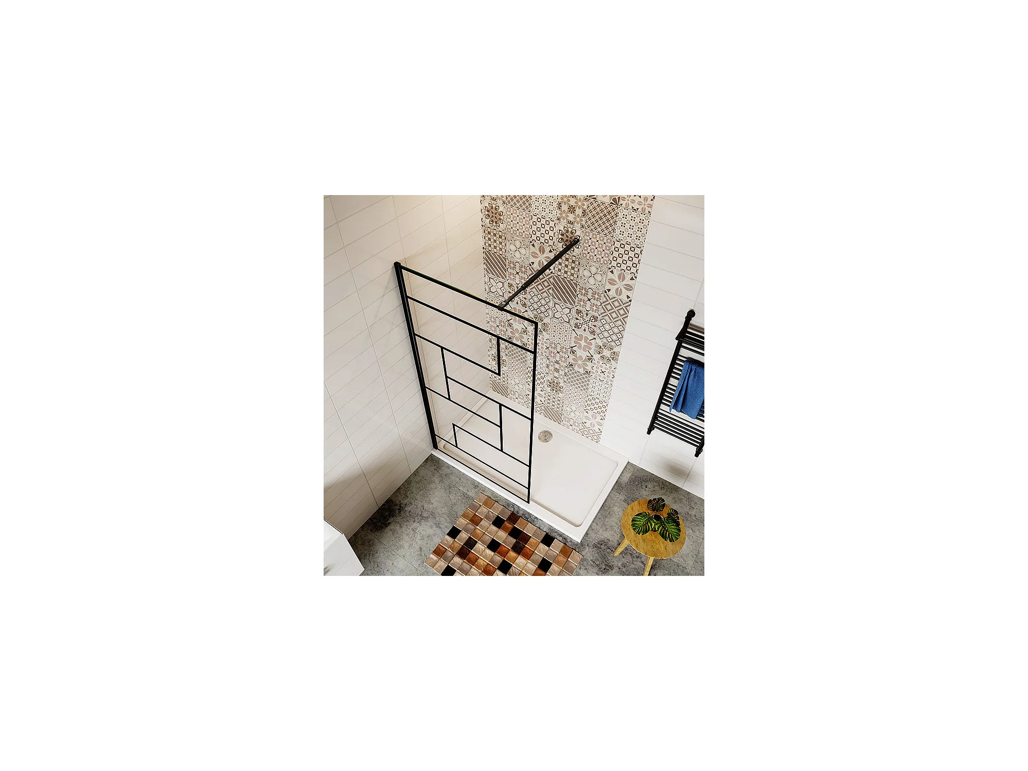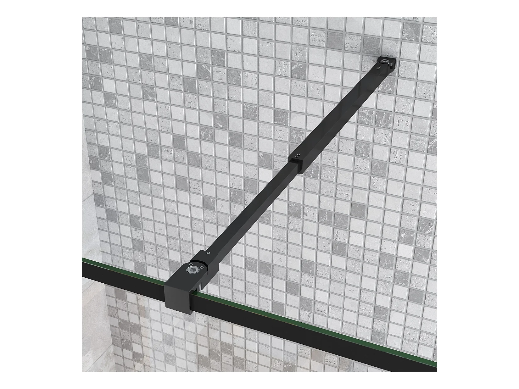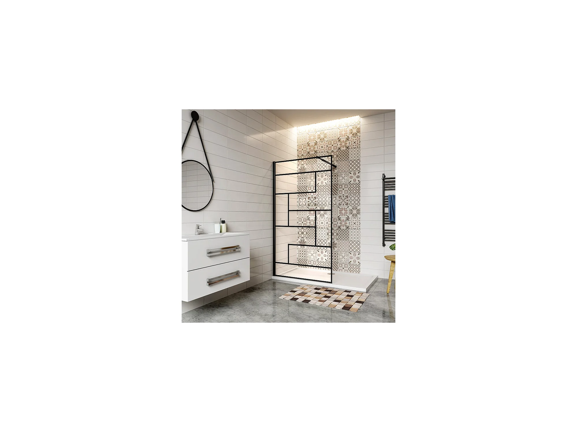 Paroi de douche 90x200cm fixe à l'italienne avec barre de fixation noire carrée 73-120cm extensible, en 8mm verre anticalcaire style moderne