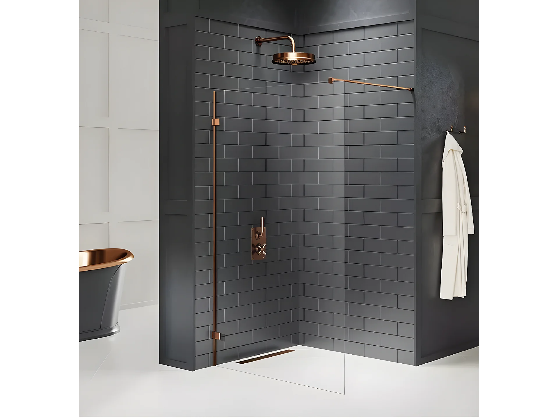 Paroi de douche à l'italienne 60 cm cuivre brossé TAHITI COPPER BRUSHED