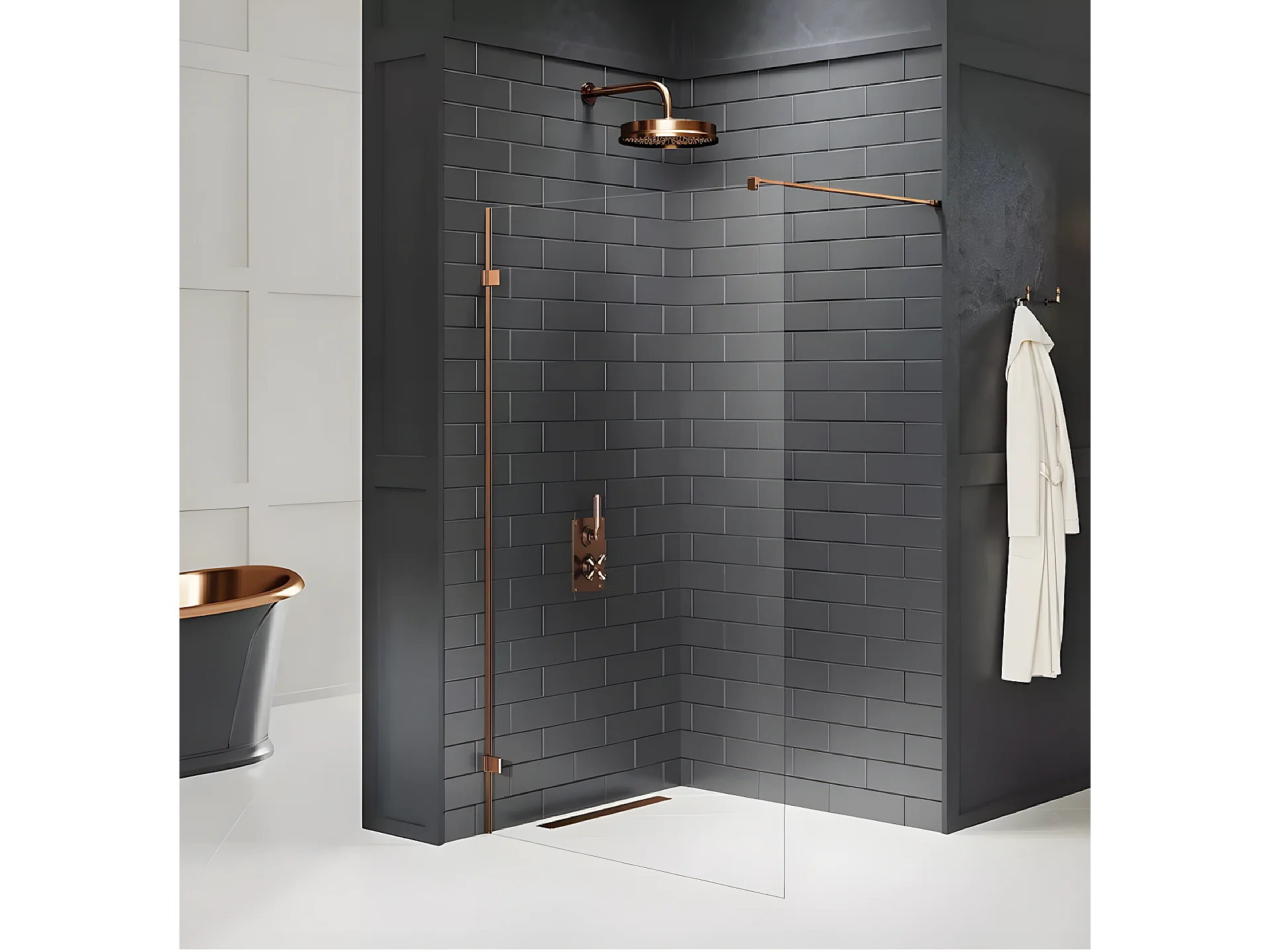 Paroi de douche à l'italienne 70 cm cuivre brossé TAHITI COPPER BRUSHED