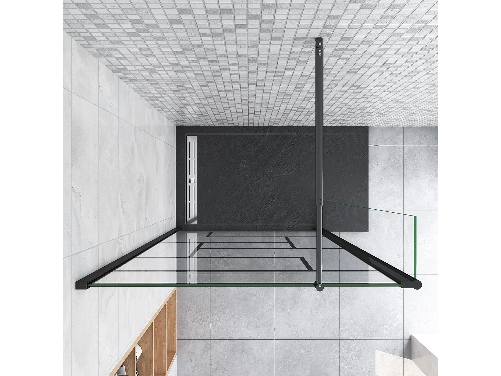 Paroi de douche fixe à l'italienne 90+30x200cm avec retour pivotant - Noir - avec barre de fixation 70-120cm en cylindrique