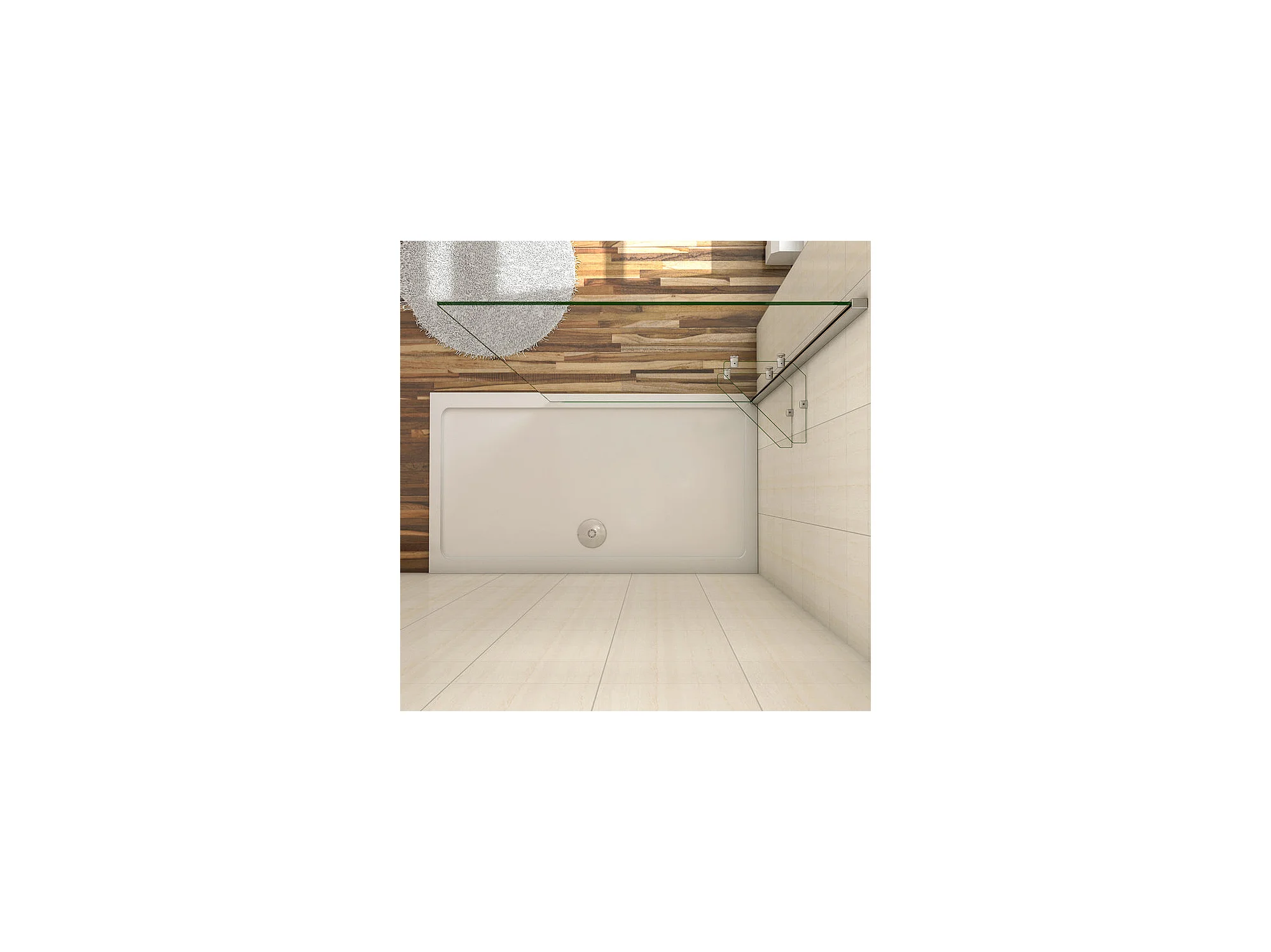 Paroi de douche à l'italienne 90x190cm en 8mm verre anticalcaire, avec 2 étagères en verre securit