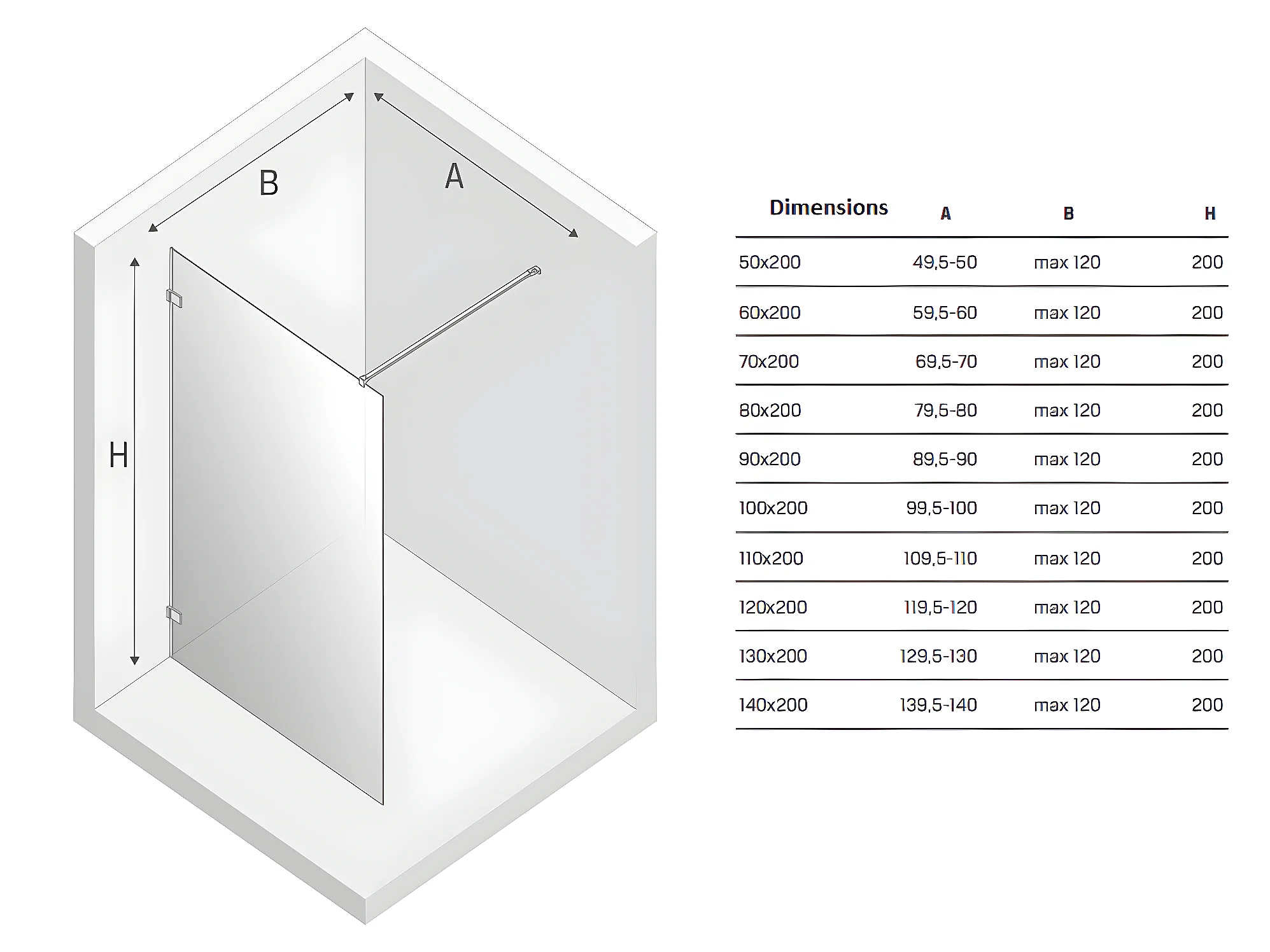 Paroi de douche à l'italienne noire avec cadre 100 cm BORA BORA BLACK
