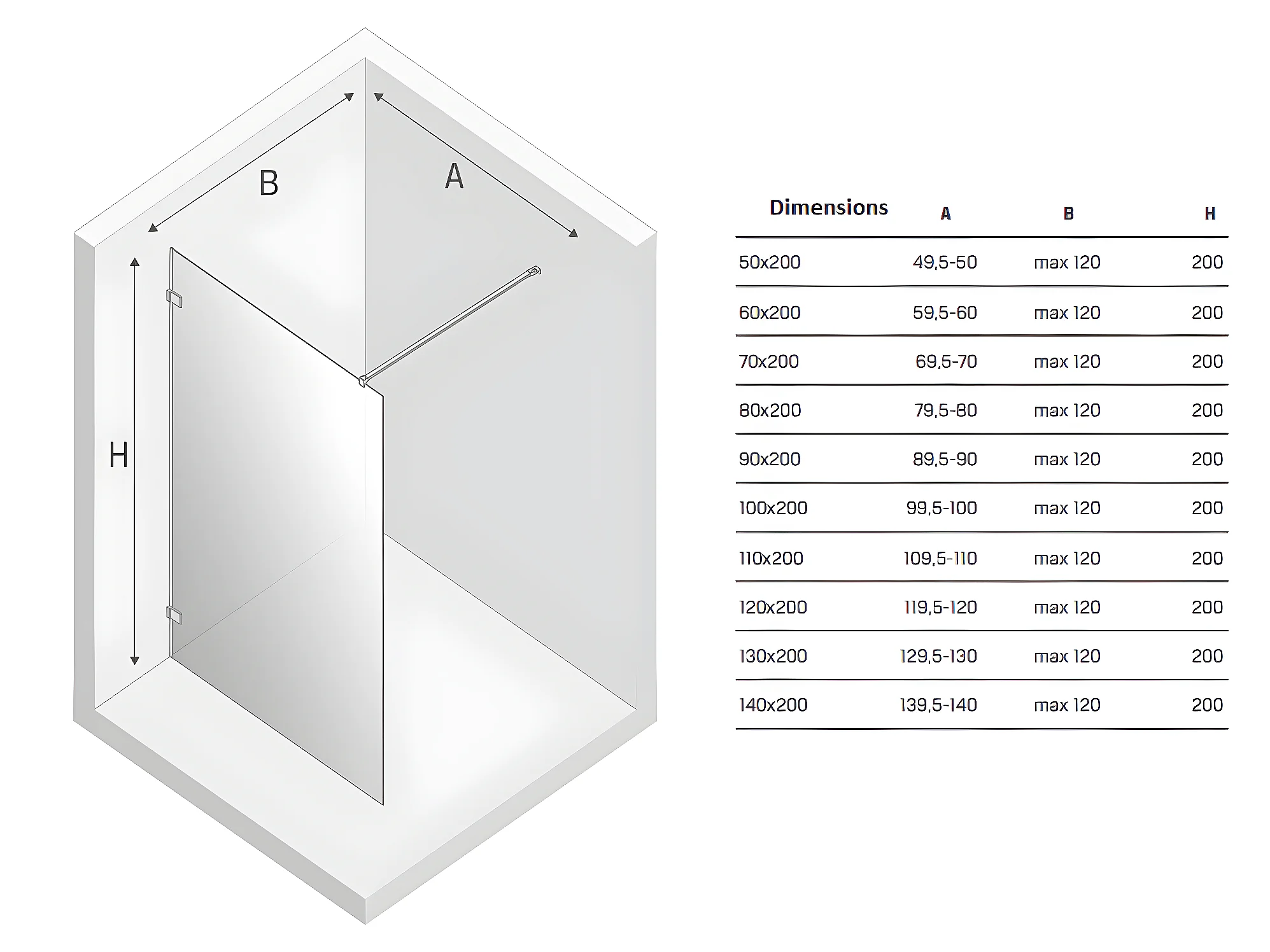 Paroi de douche à l'italienne noire avec cadre 140 cm BORA BORA BLACK