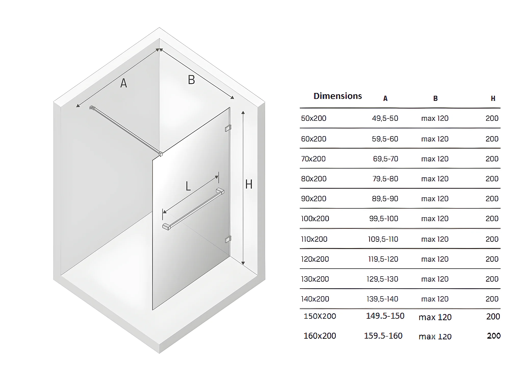 Paroi de douche à l'italienne noire avec porte serviette 120 cm BORA BORA BLACK