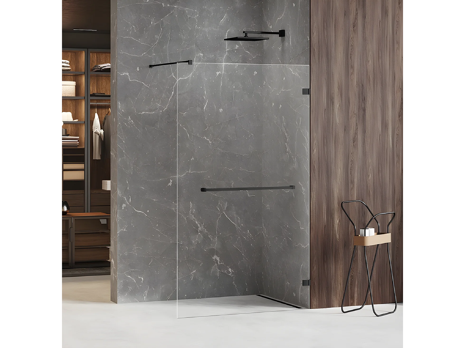 Paroi de douche à l'italienne noire avec porte serviette 50 cm BORA BORA BLACK