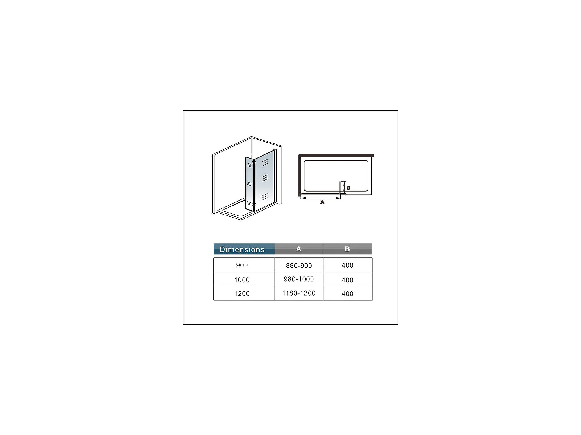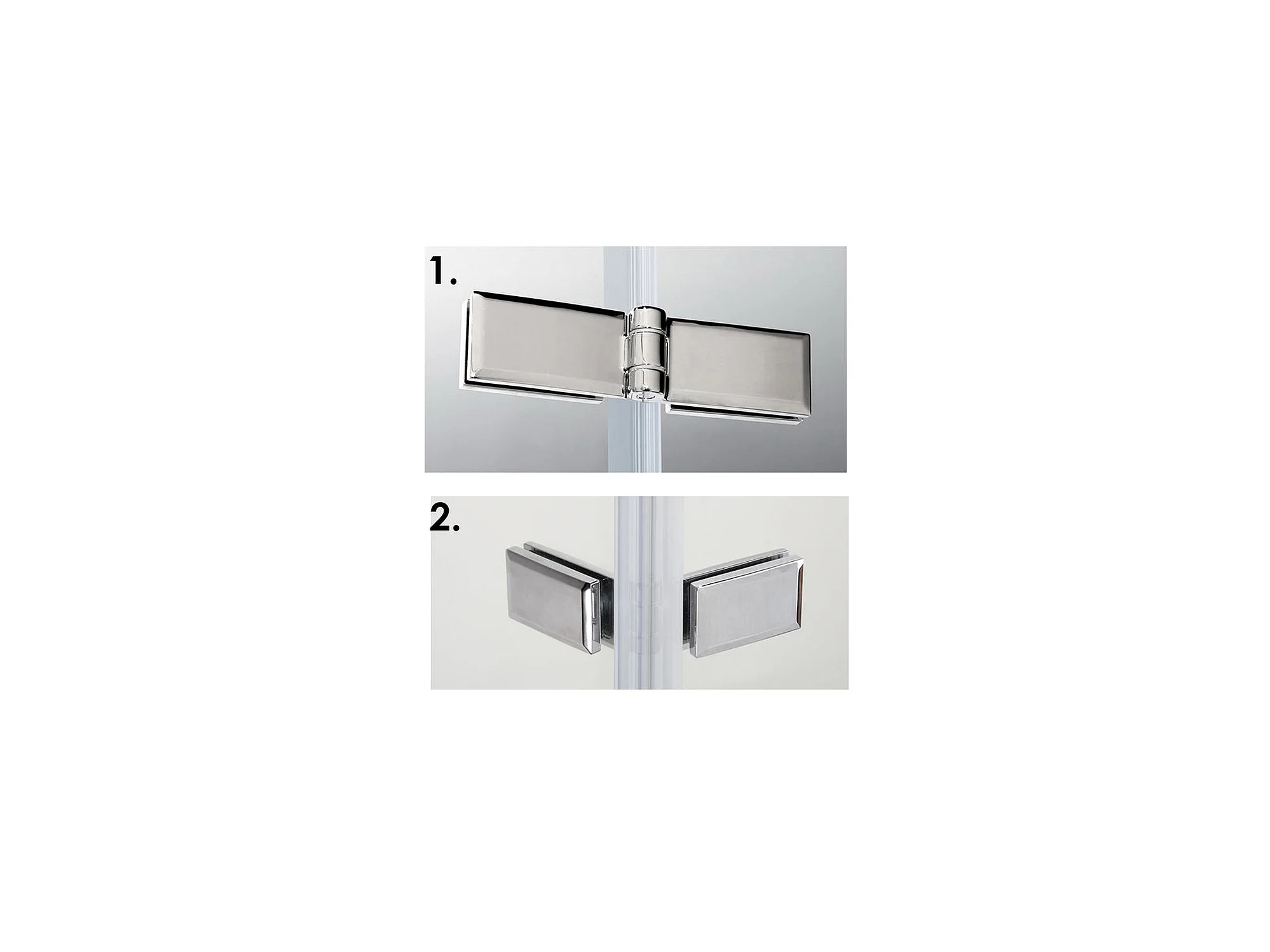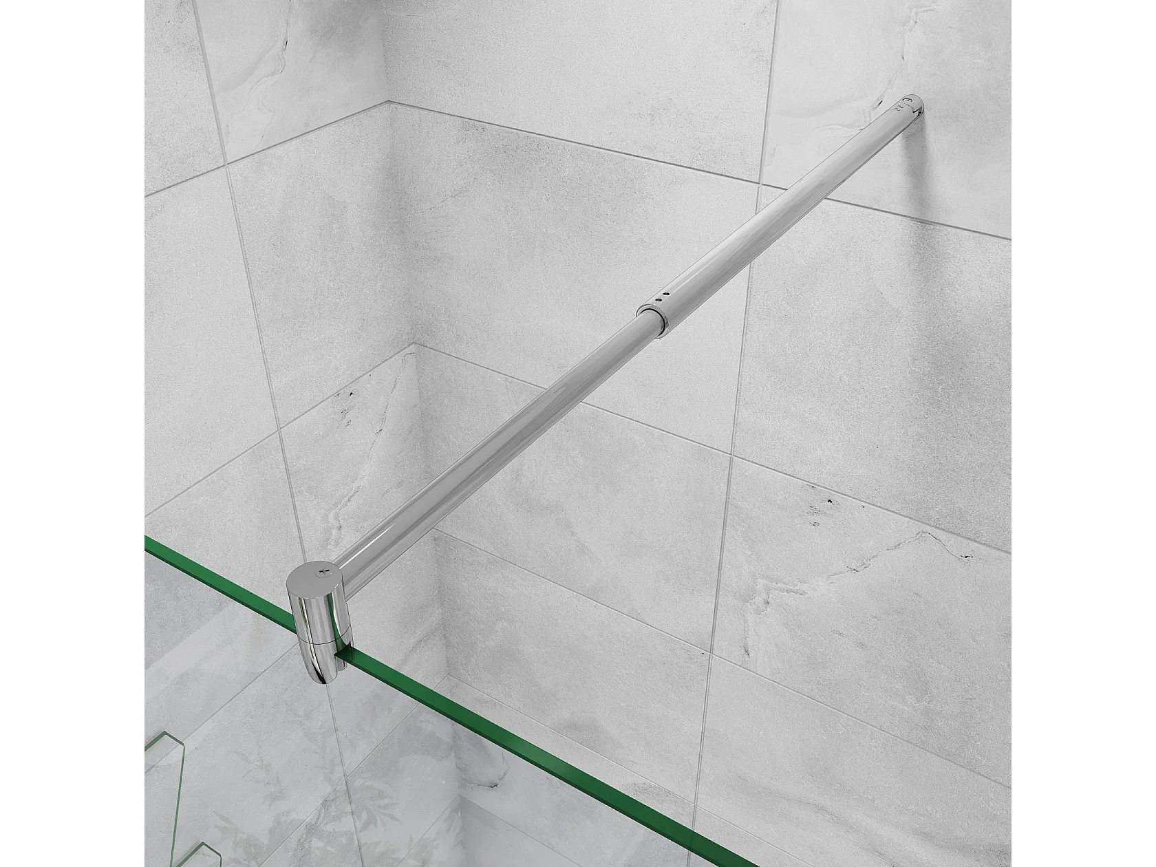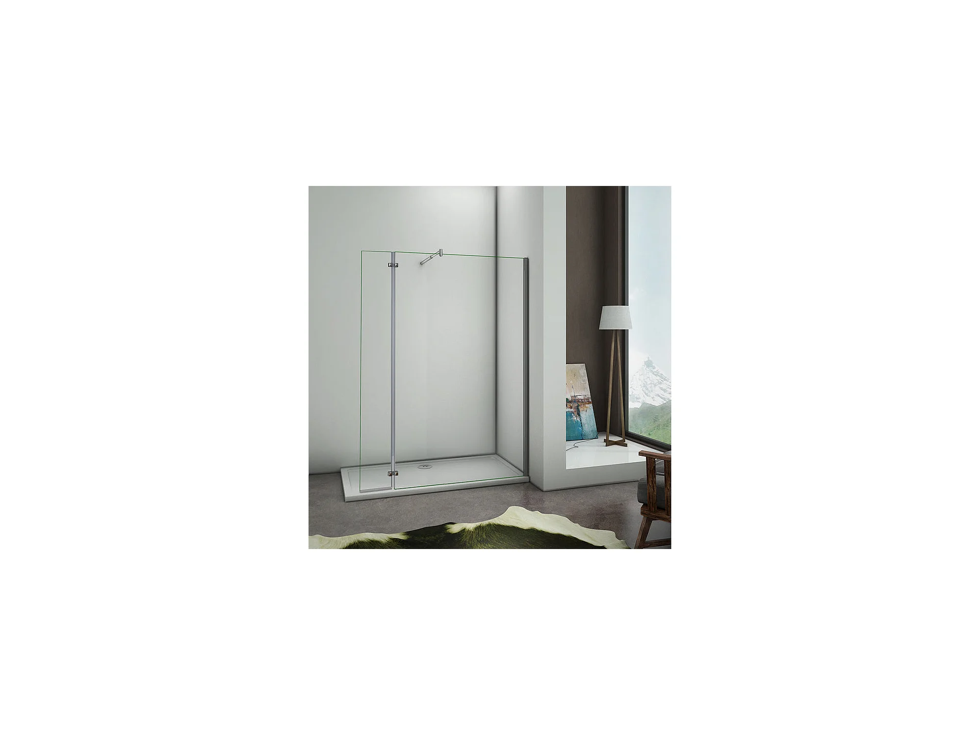 Paroi de douche fixe à l'italienne avec retour pivotant 100+40x200cm, charnières, avec barre de fixation cylindrique 70-120cm