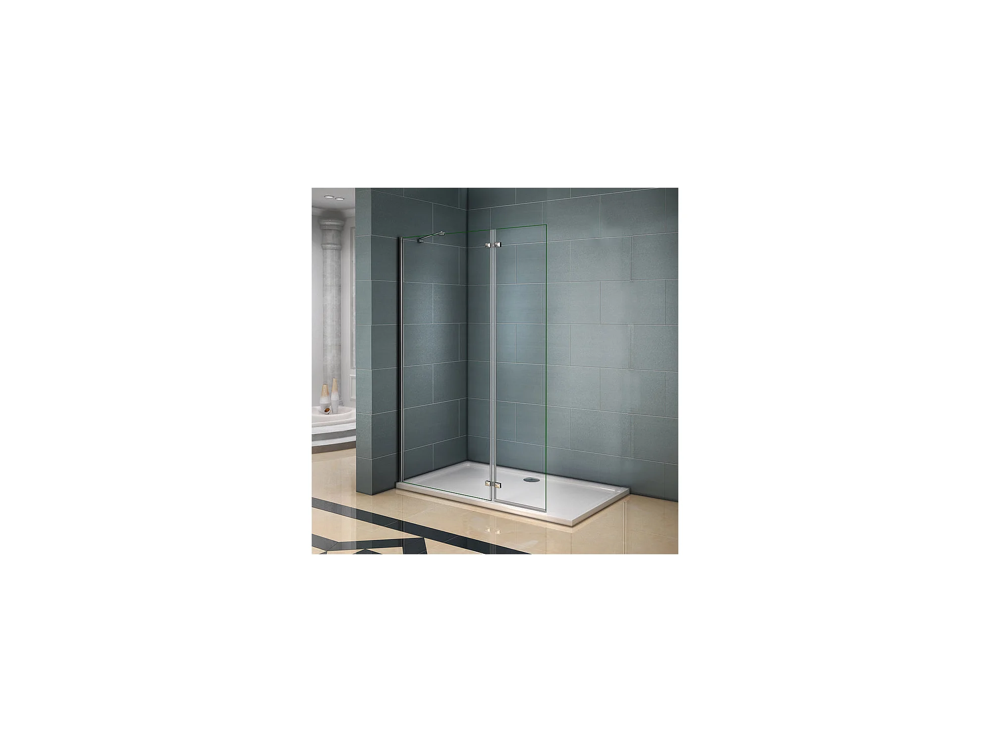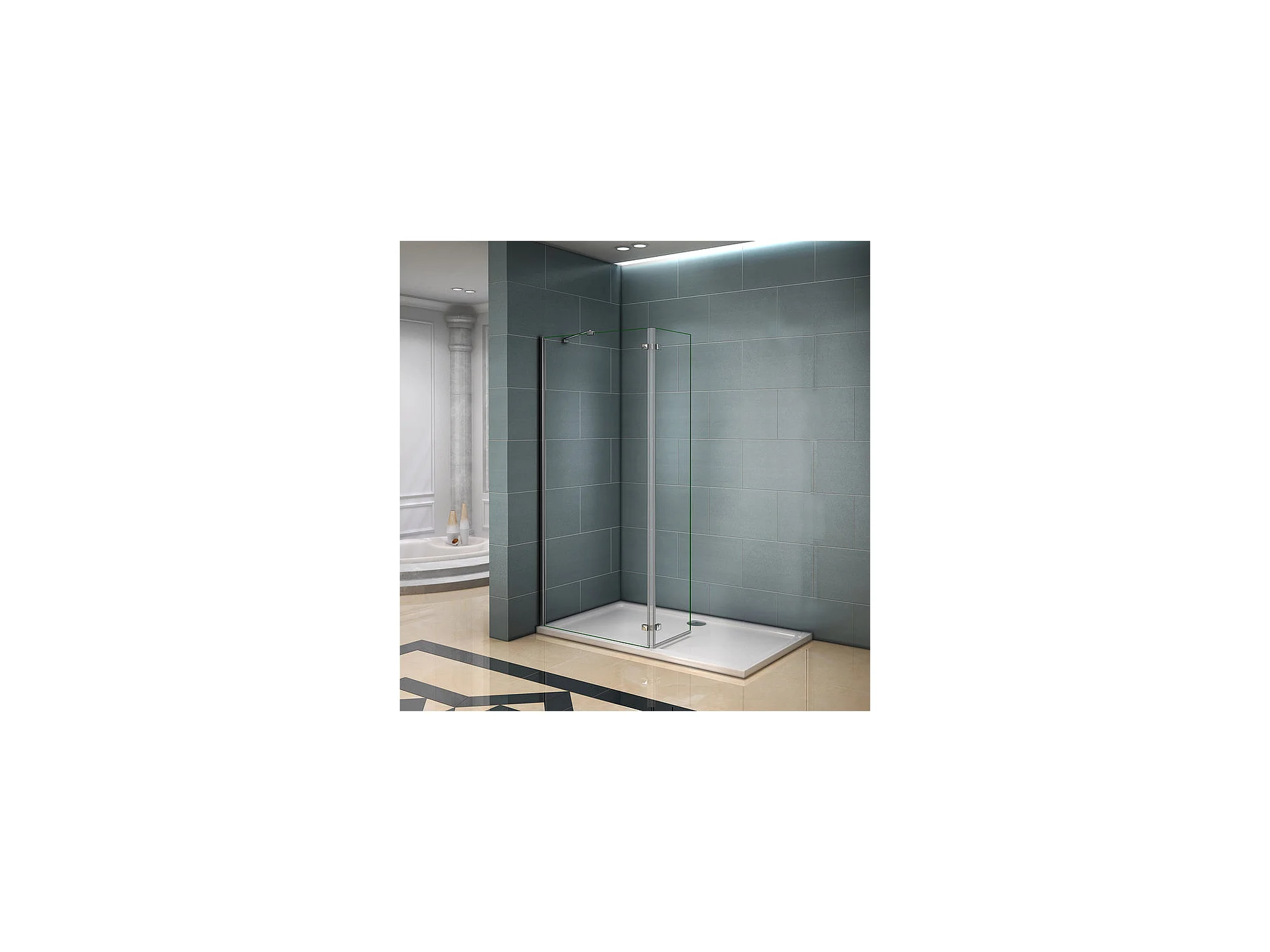 Paroi de douche fixe à l'italienne avec retour pivotant 90+40x200cm, charnières, avec barre de fixation d'angle 45cm