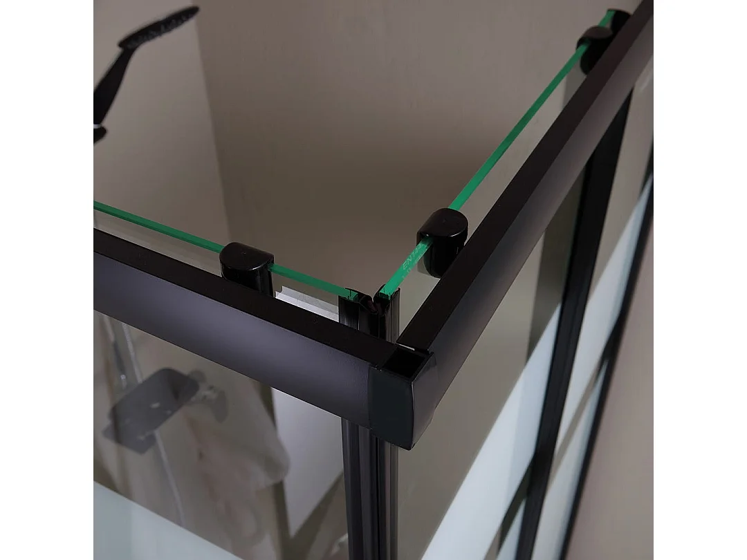 Paroi De Douche Coulissante Sérigraphiée 80X80 Avec Profilés Noirs Mats | City