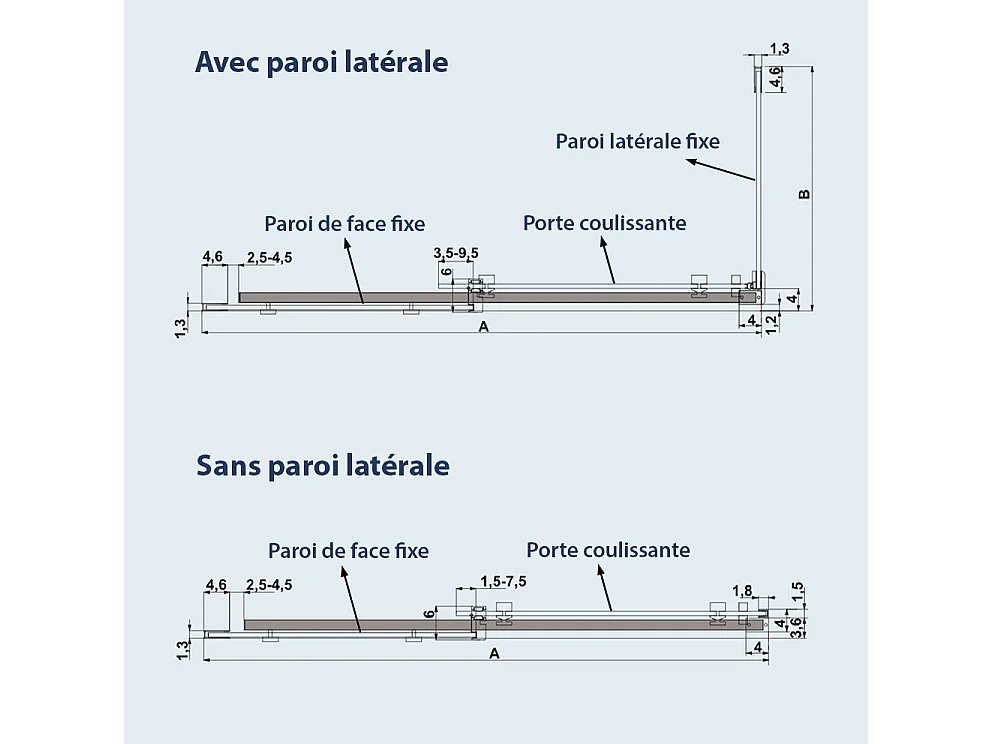 Paroi de douche fixe + Porte coulissante LUNA profil noir mat 115 cm Sans paroi latérale