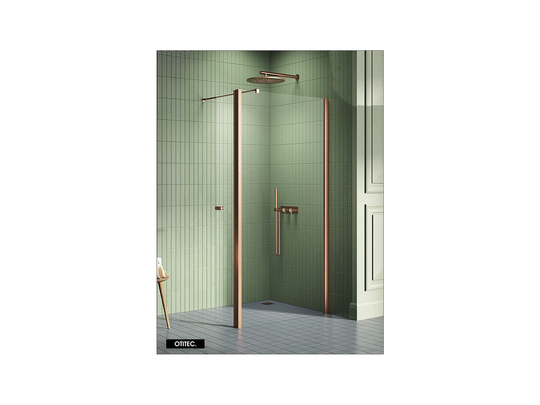 Paroi de Douche Italienne - 70 x 195 - SEPTIA CUIVRE BROSSE - Retour Pivotant 34 cm - Cuivre Brossé