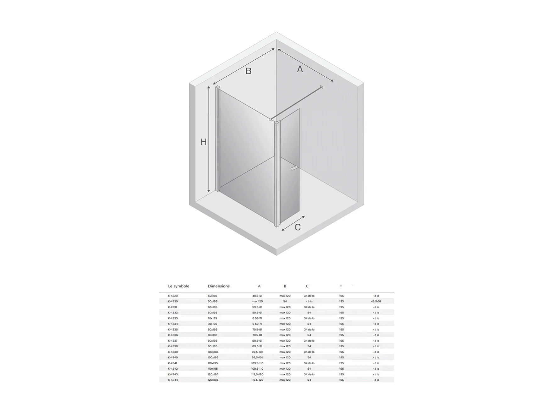 Paroi de Douche Italienne - 80 x 195 - SEPTIA OR BROSSE - Retour Pivotant 34 cm - Or Brossé