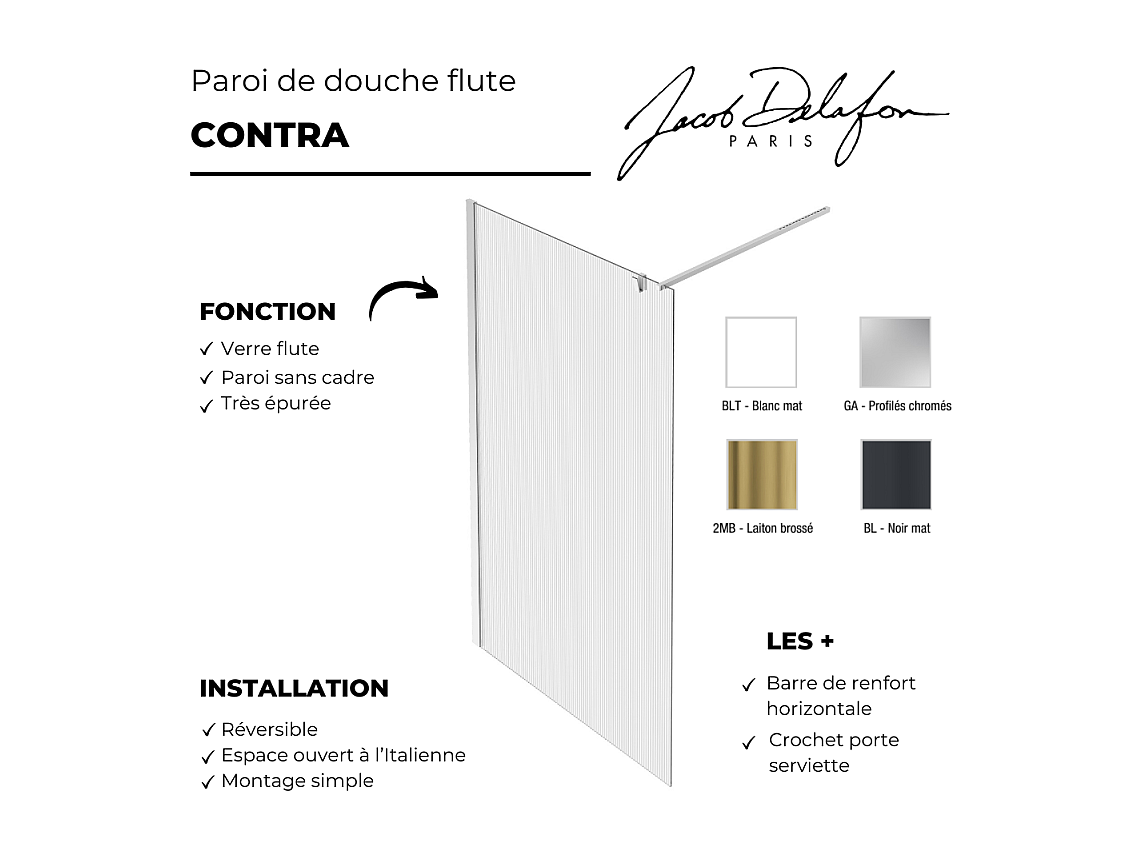 Paroi de douche JACOB DELAFON Contra flute 100cm + kit profilé Noir mat