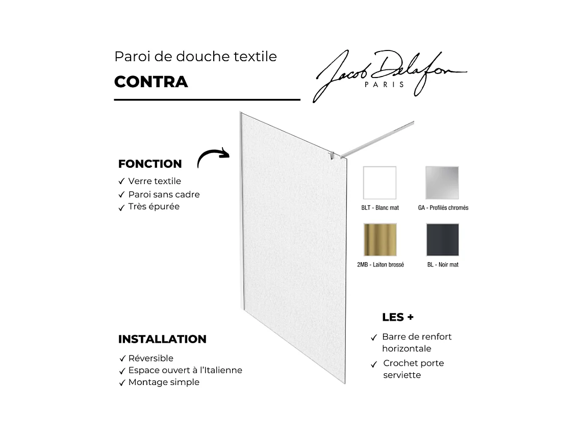 Paroi de douche JACOB DELAFON Contra textile 100cm + kit profilé Blanc mat