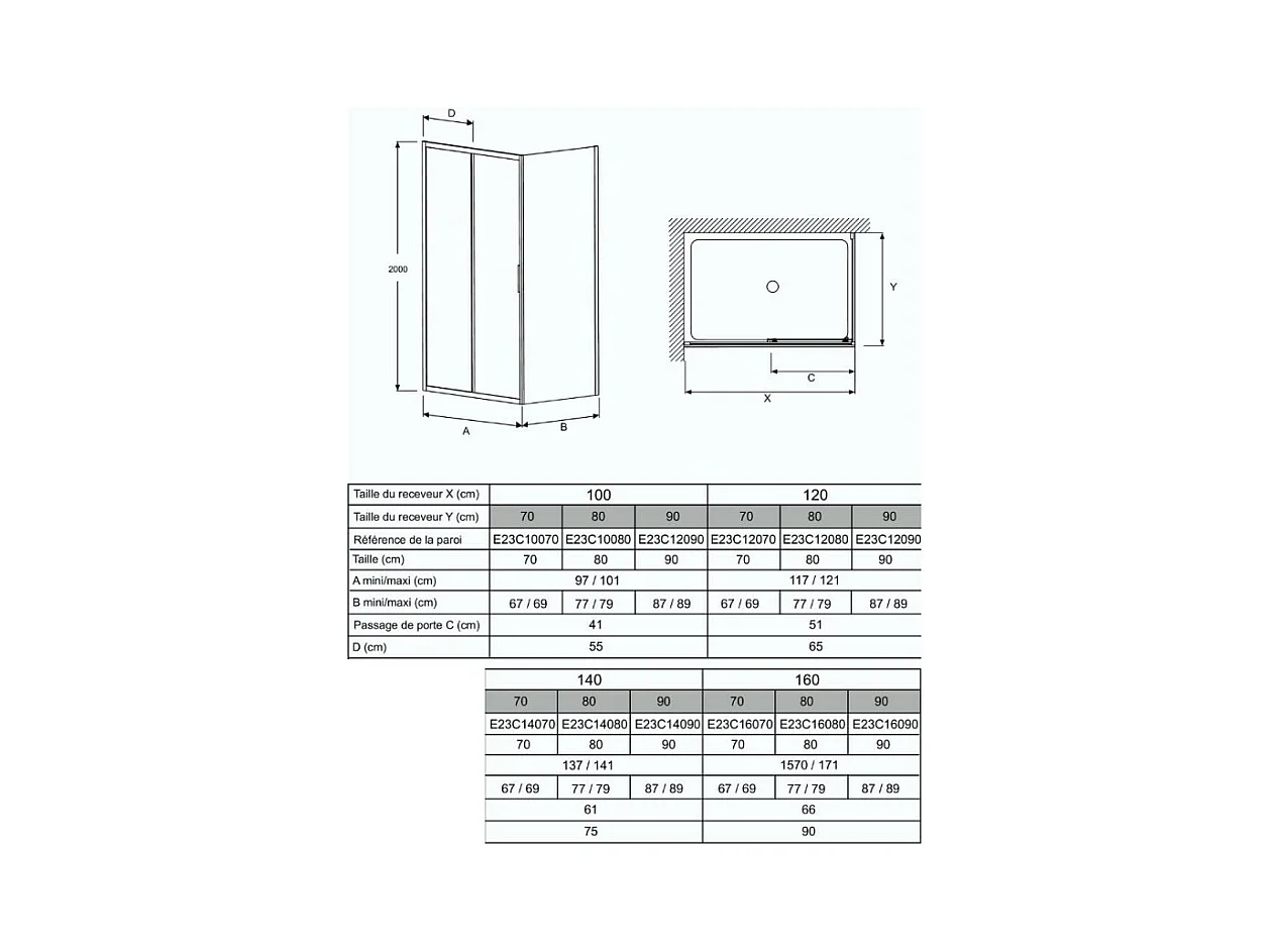 Paroi de douche JACOB DELAFON L'ingénieuse porte coulissante, installation angle 120 x 70