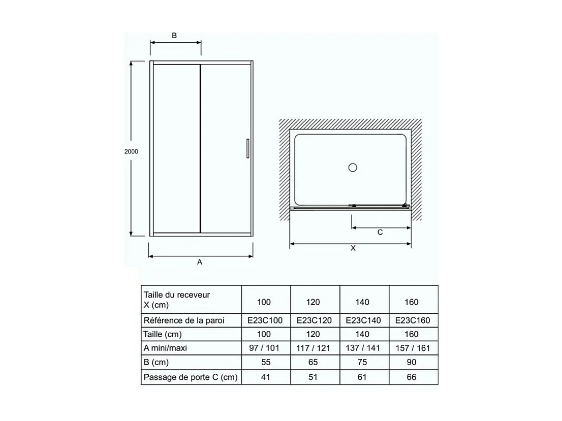 Paroi de douche JACOB DELAFON L'ingénieuse porte coulissante, installation niche 160 x 200