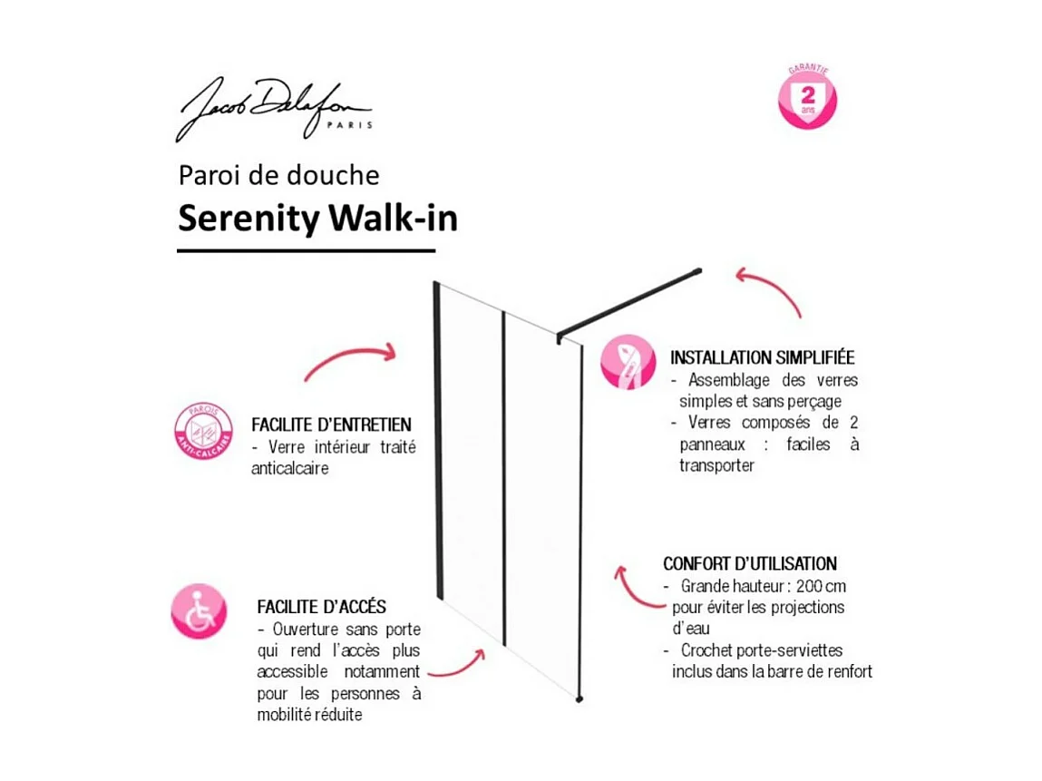 Paroi de douche JACOB DELAFON Serenity, noir brillant - 100 cm