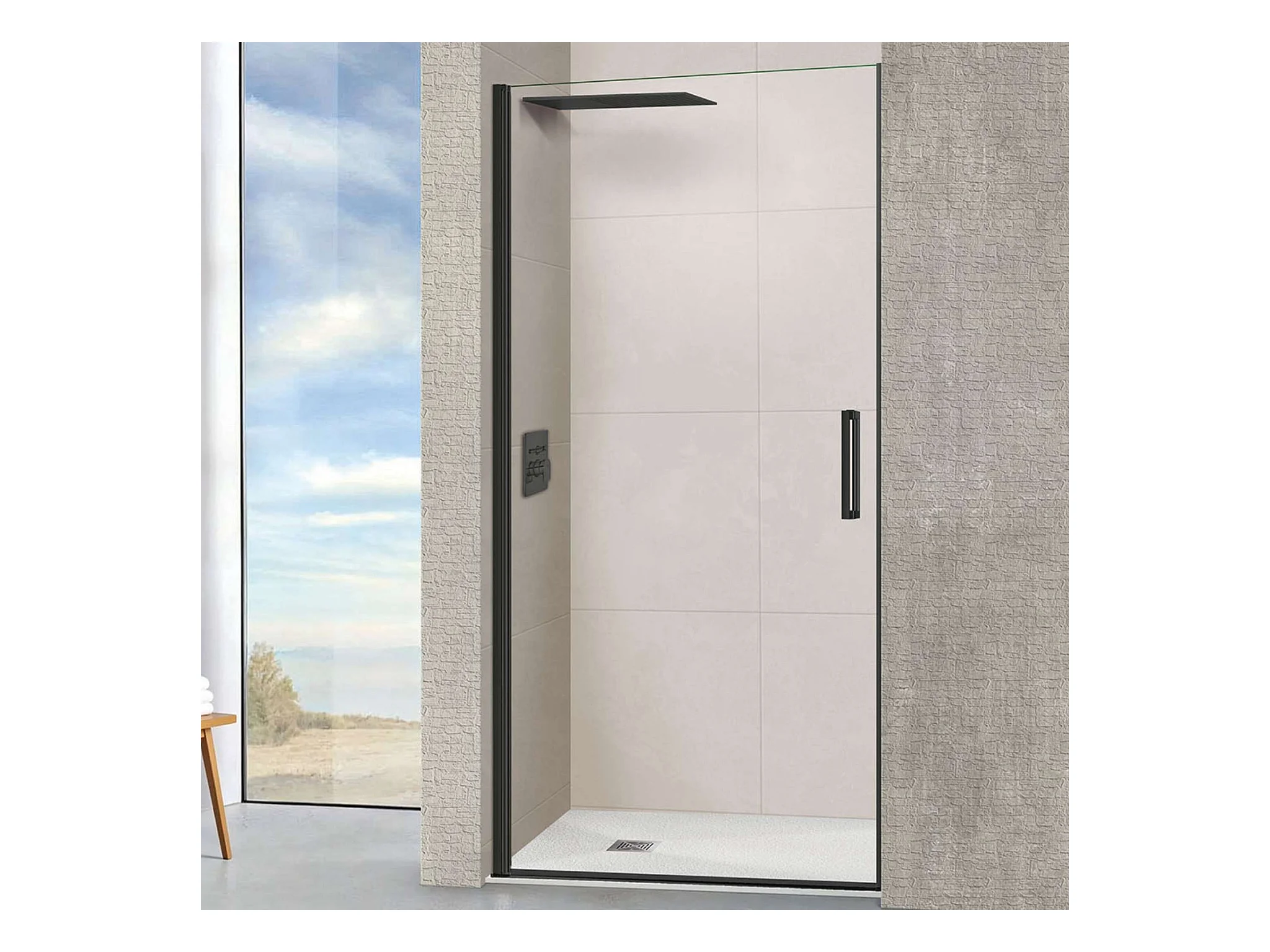 Porte de douche pivotante droite - Paroi de douche L.80 x H195 cm - Verre trempé 6mm transparent anti calcaire - Noir Mat - SUPERBAN