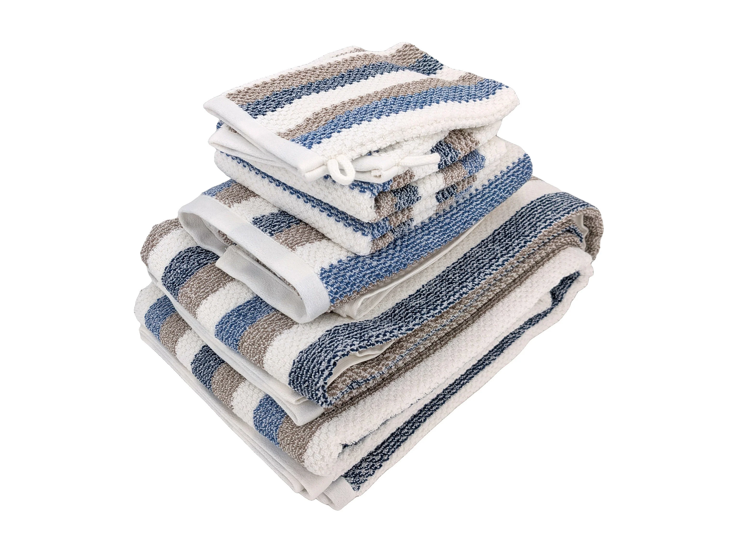 Parure de bain à rayures pur coton collection BREEZE 7 pièces bleu