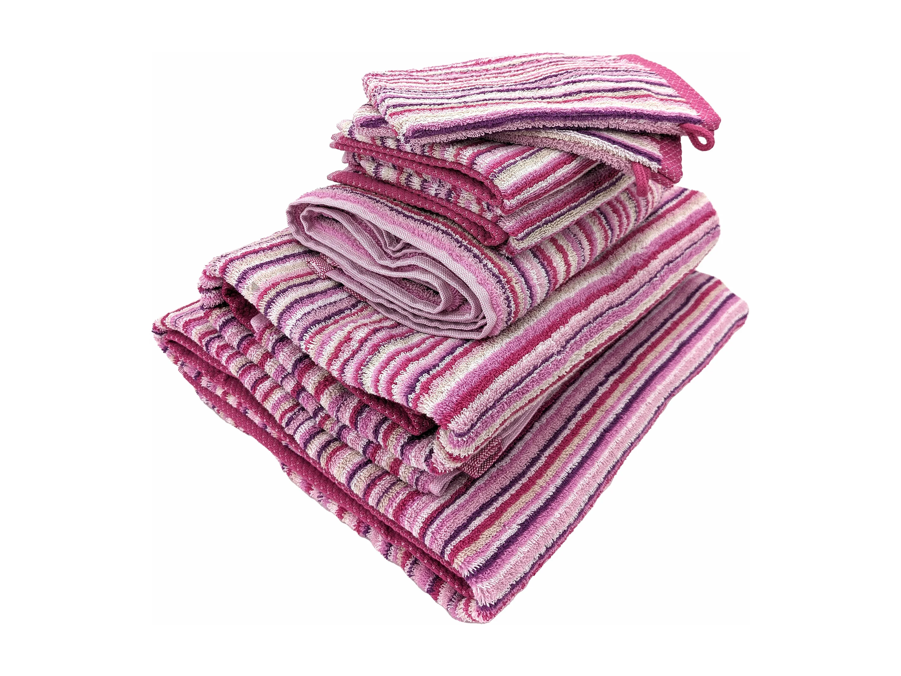 Parure de bain à rayures pur coton collection BREEZE 7 pièces rose