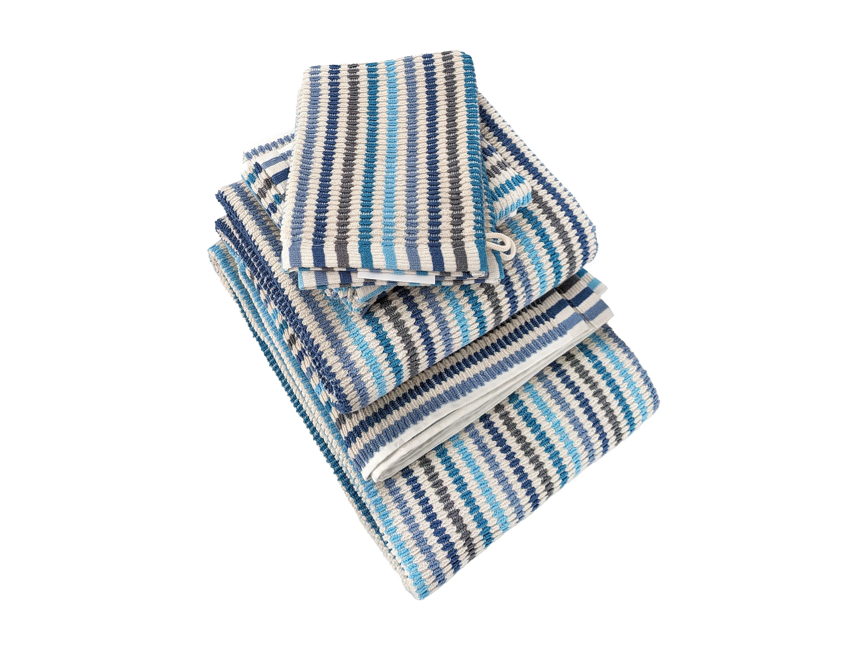 Parure de bain à rayures pur coton collection BREEZE 7 pièces bleu
