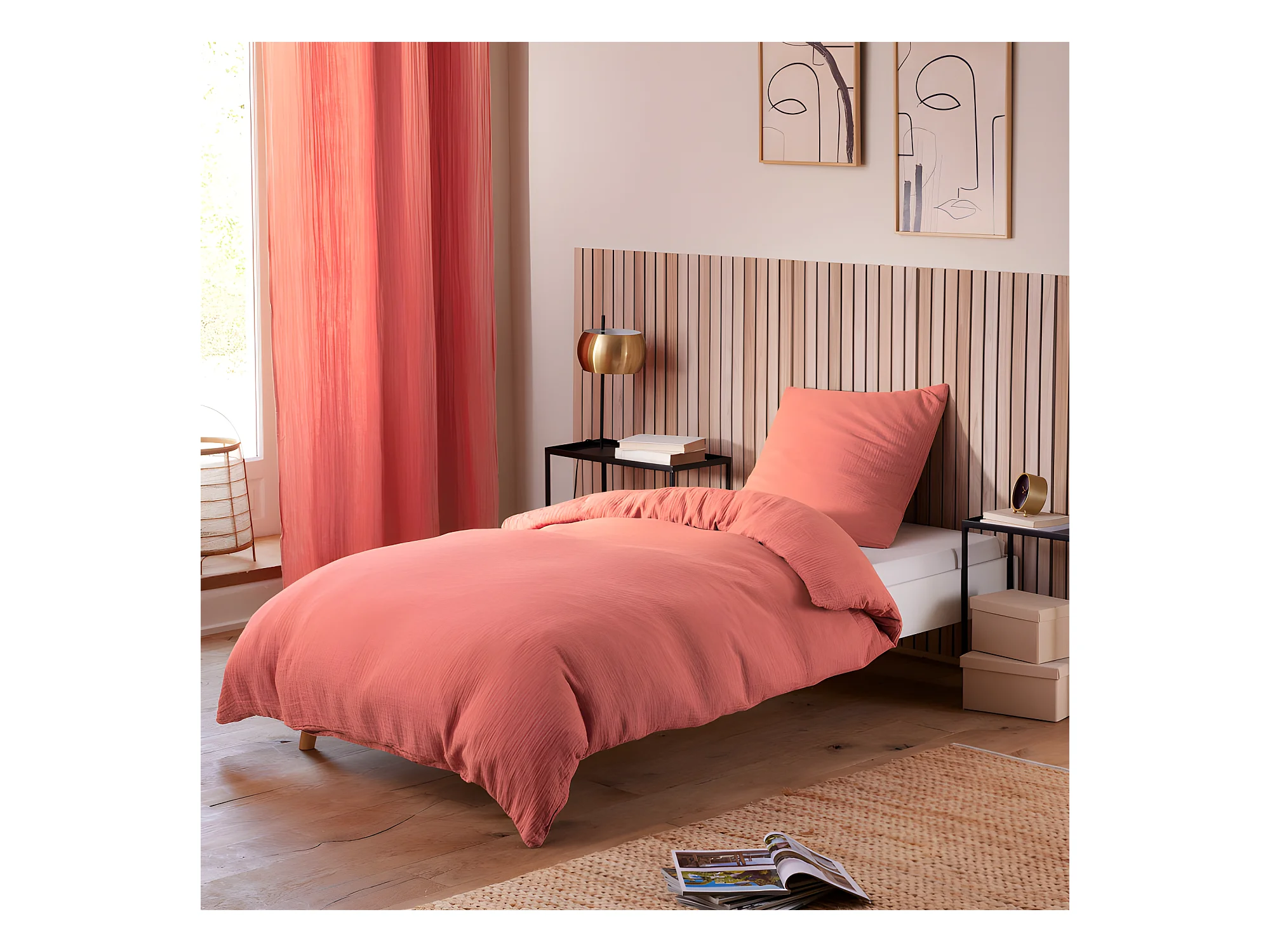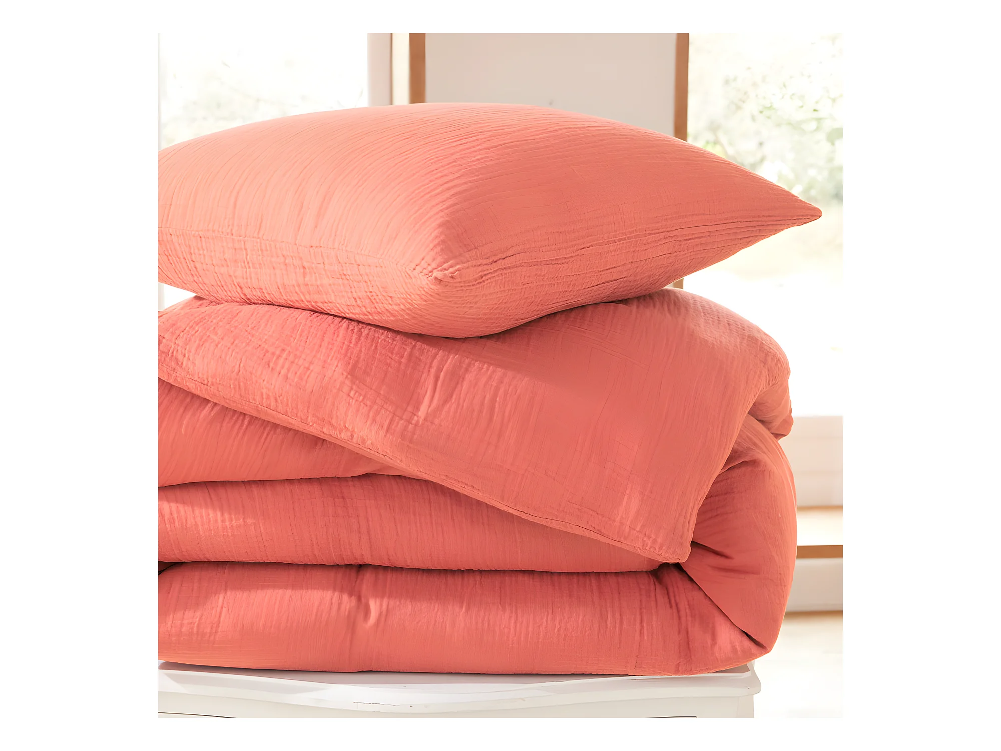 Housse de couette double gaze de coton orange terracotta 140x200 cm