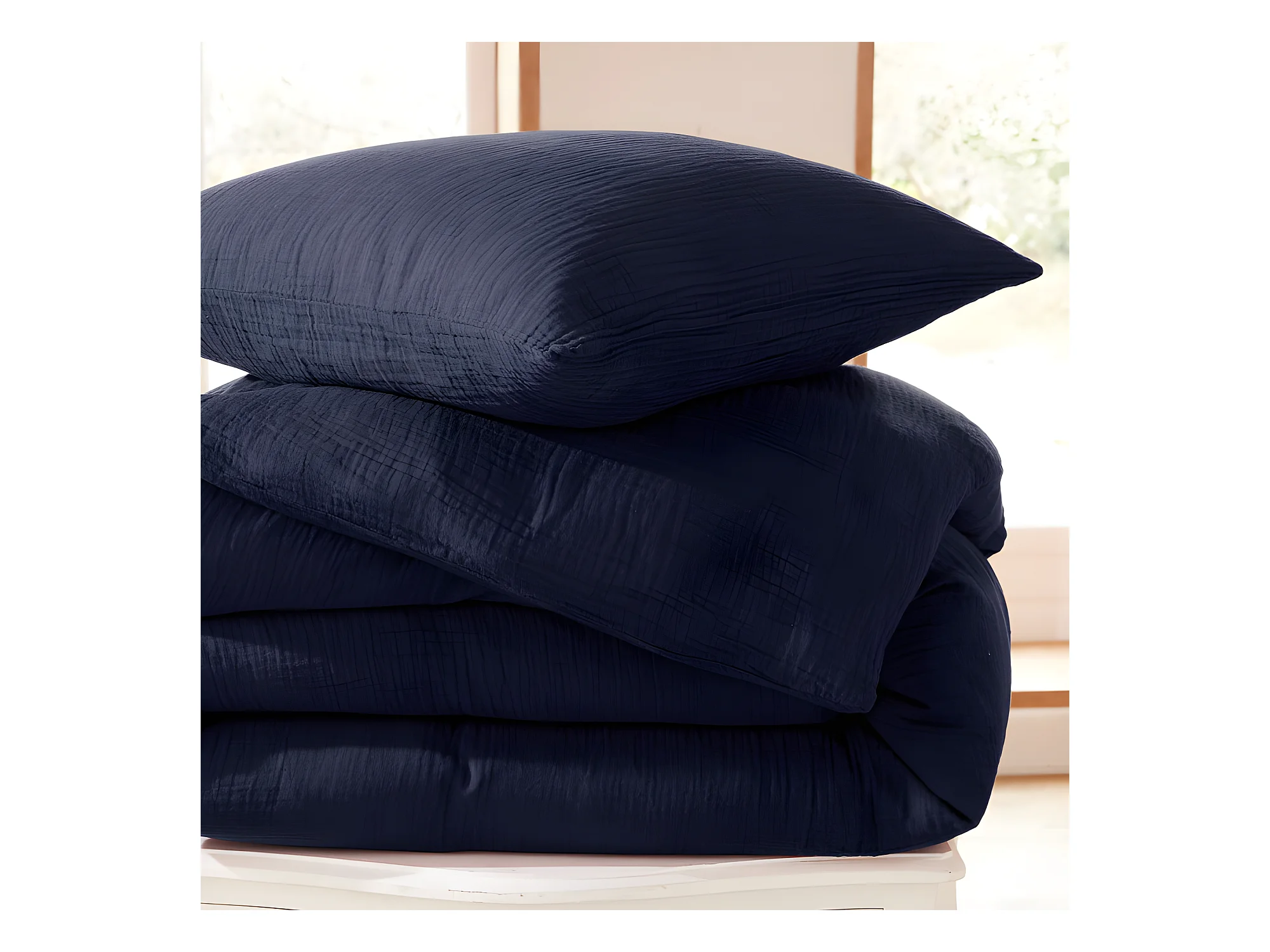 Housse de couette gaze de coton double 140 x 200 cm bleu canard - PEPA 1