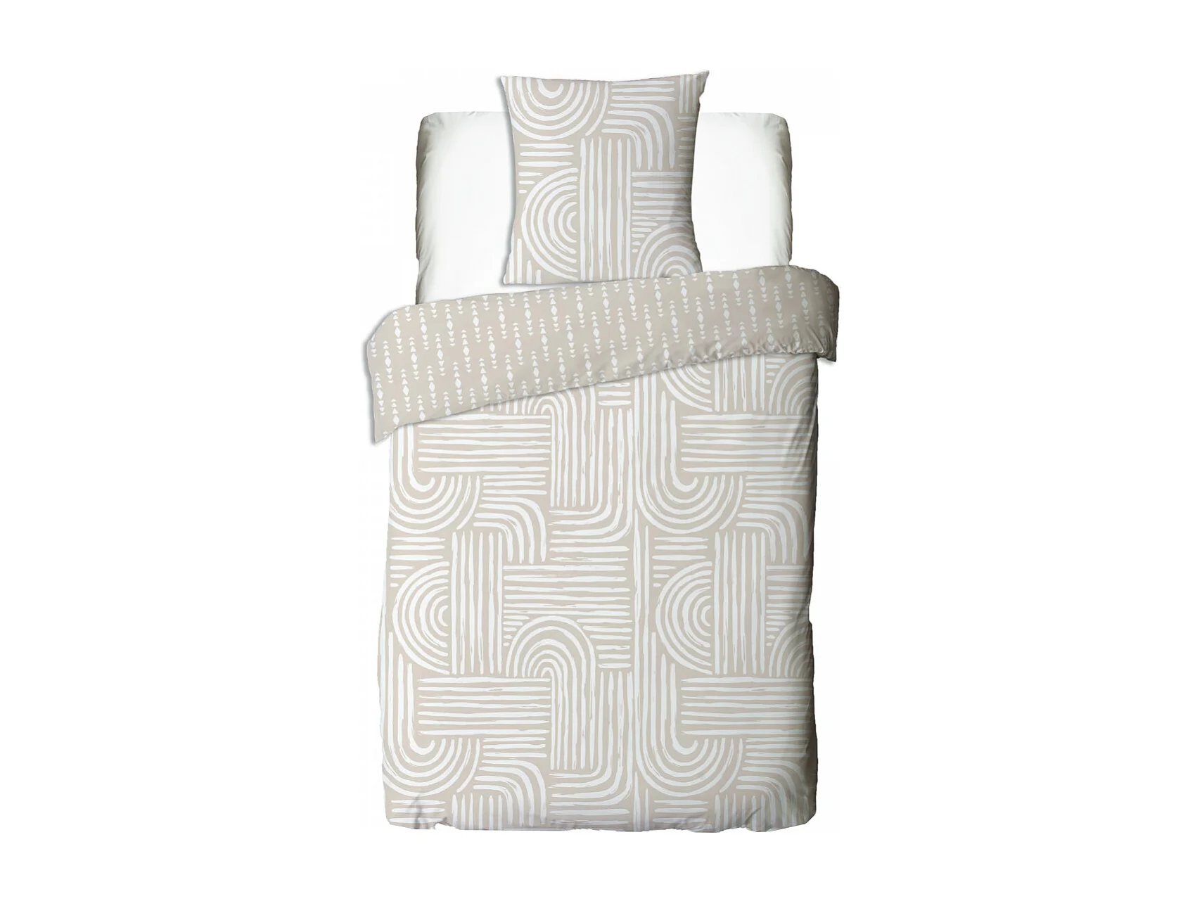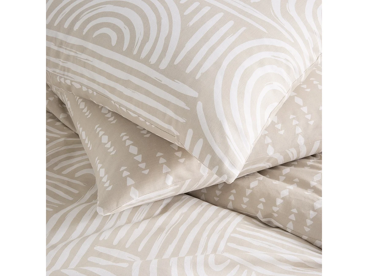 Parure de lit 1 personne en coton imprimé beige 140x200cm
