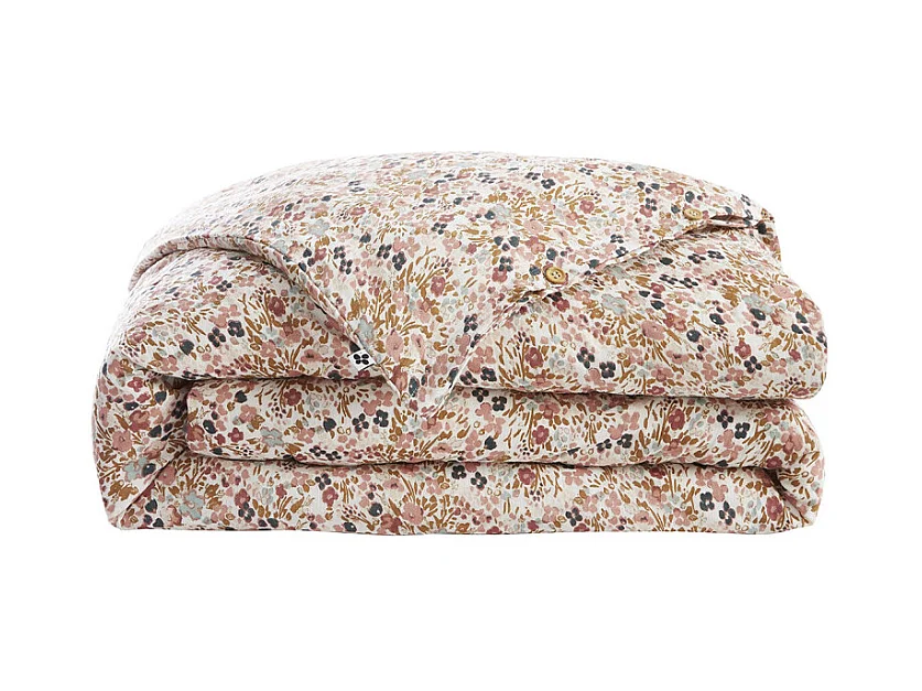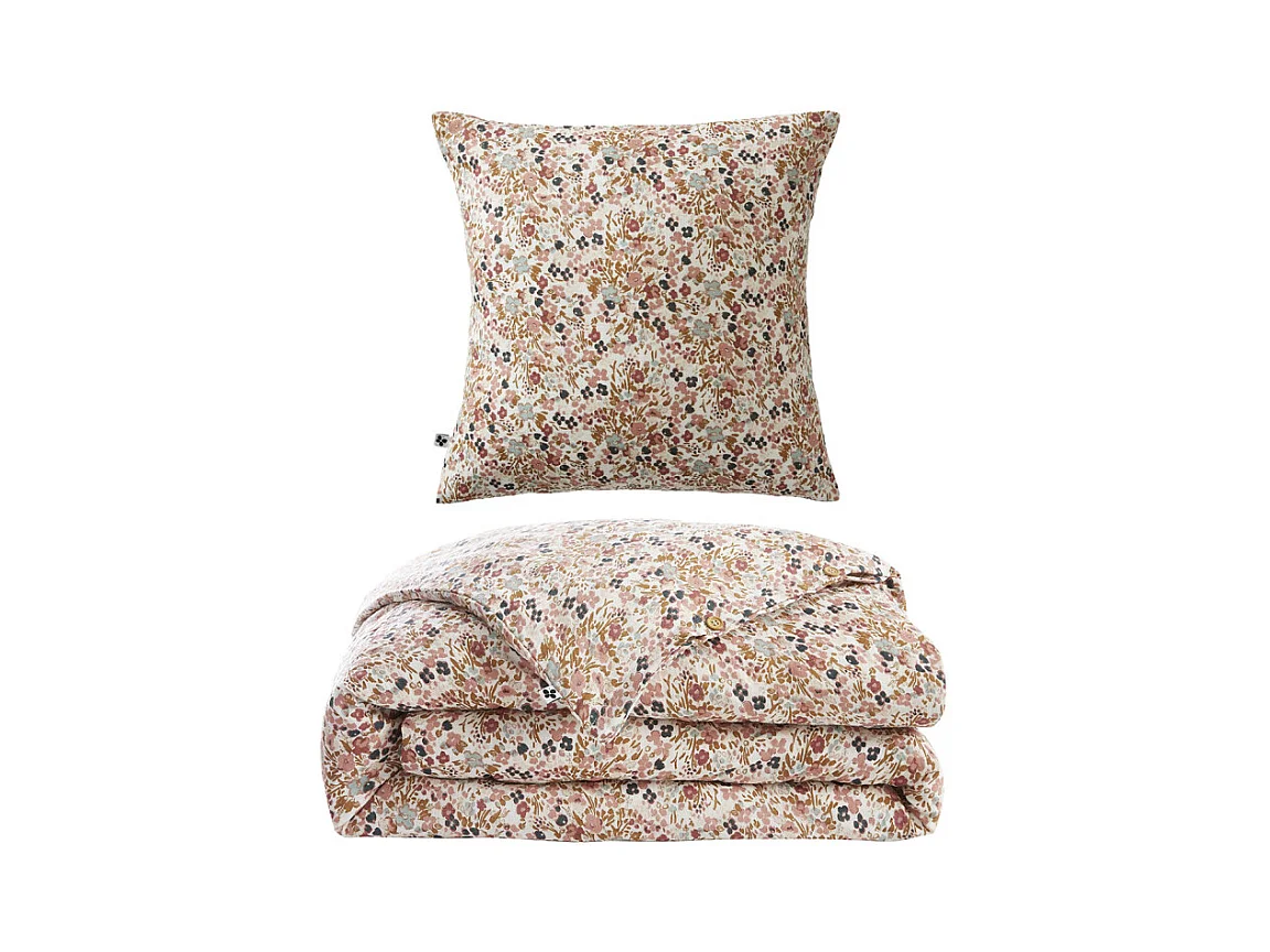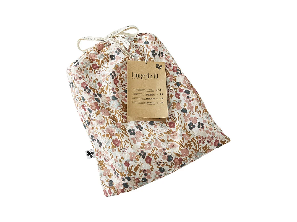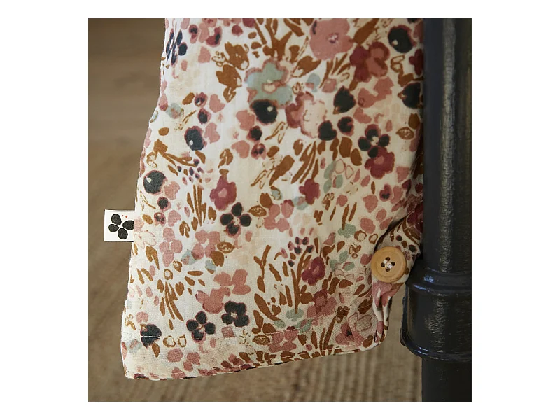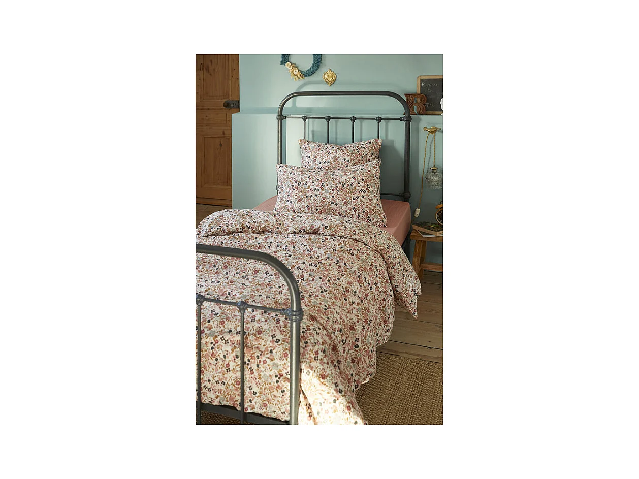 Parure de lit 140 x 200 cm gaze de coton écru et fleuri - ISABELA 2