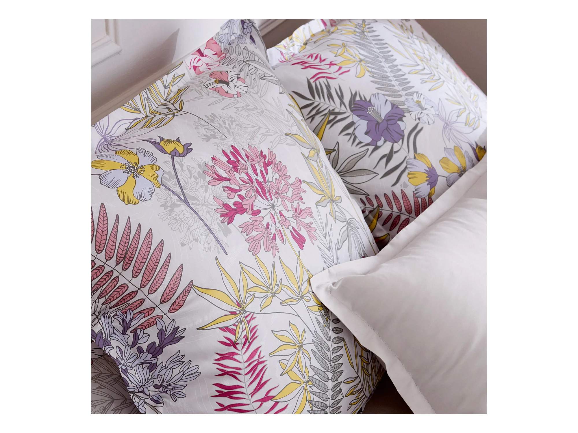 Parure de lit 140x200 cm satin de coton ANAÏS multicolore 2 pièces taies 50x70 cm