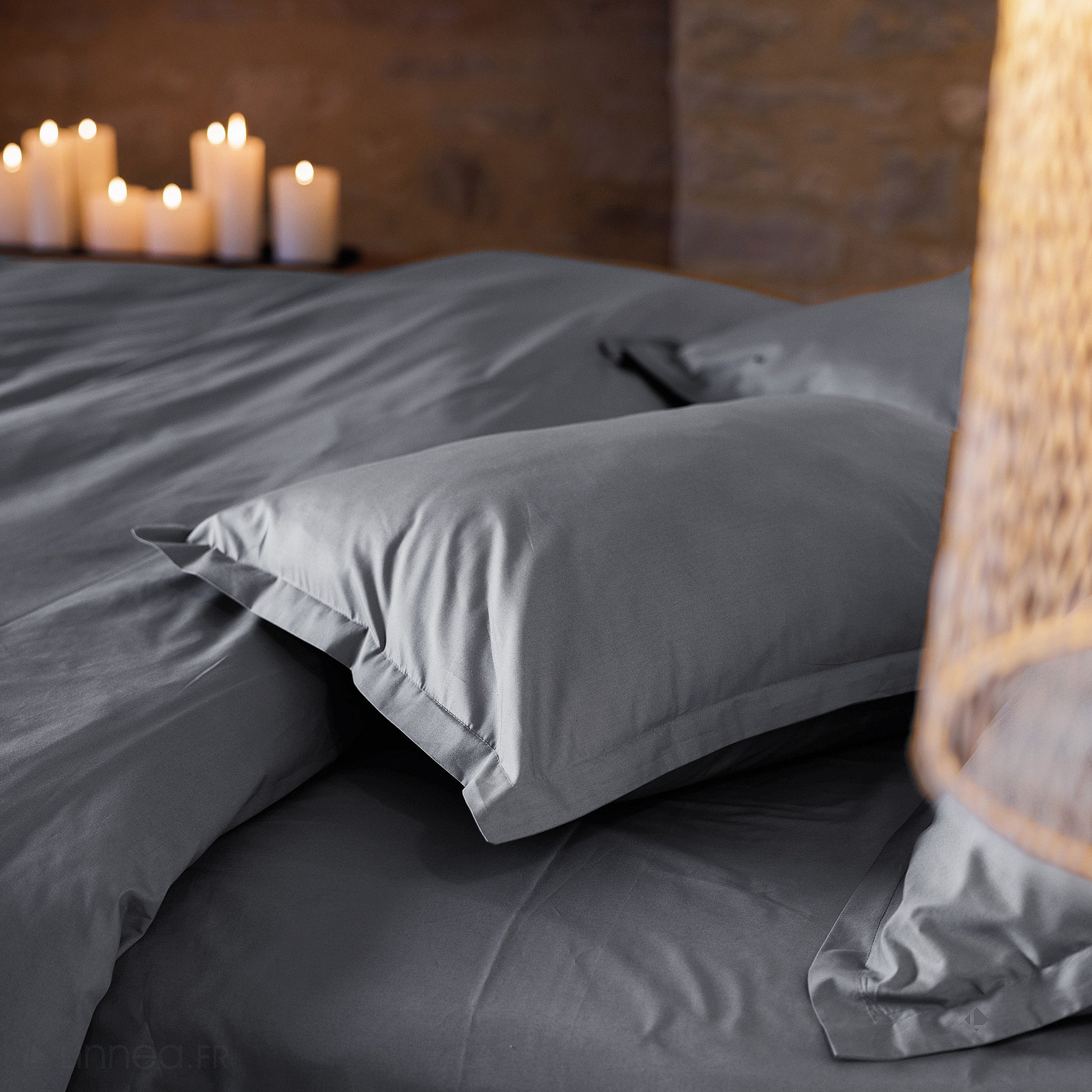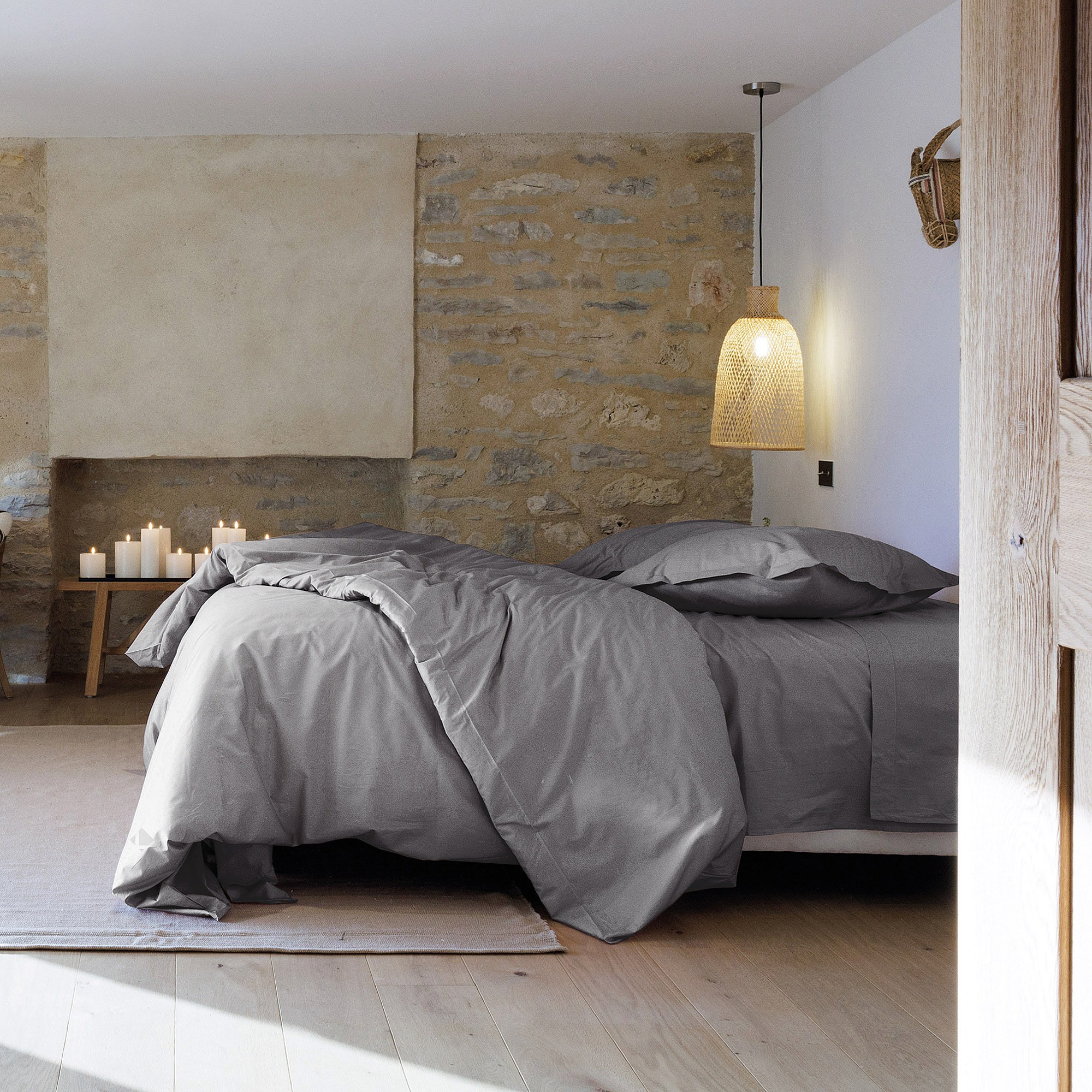 Parure de lit 140x200 cm set 50x70 cm percale MANOIR gris Ardoise