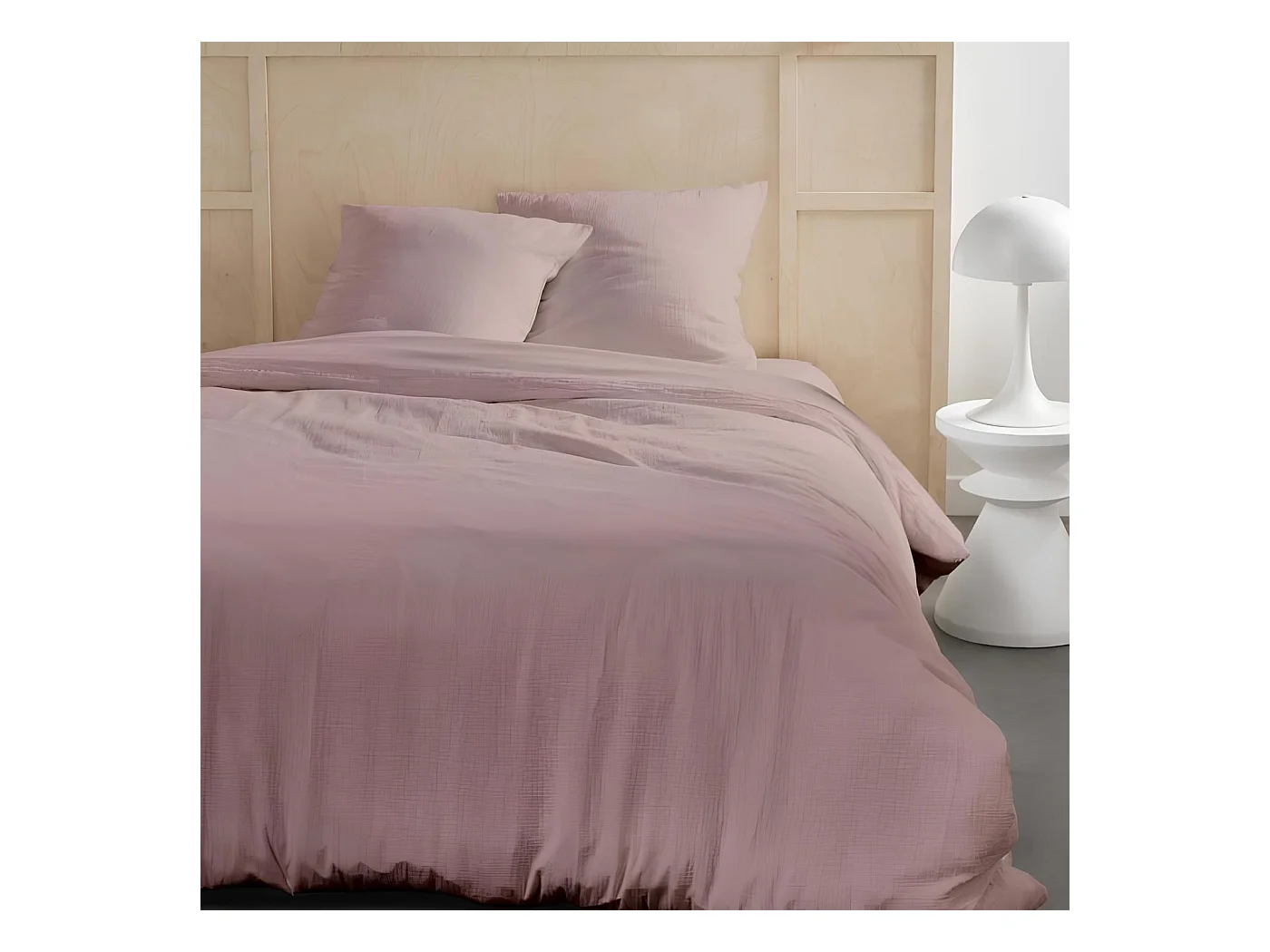 Parure de lit 240 x 260 cm en double gaze de coton rose - PEPA 2