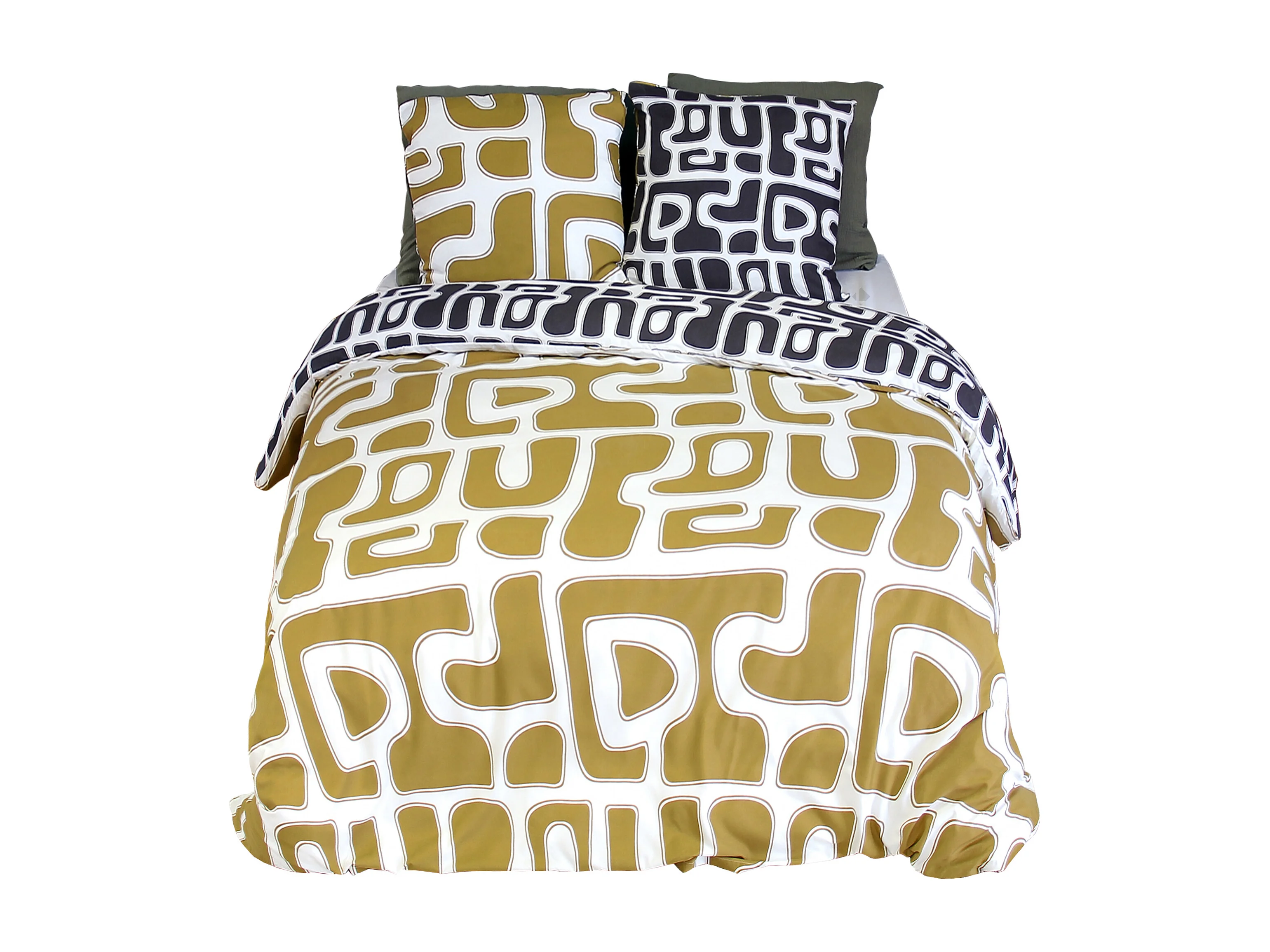 Parure de lit 240x220 cm coton NIAGARA vert Kaki 3 pièces