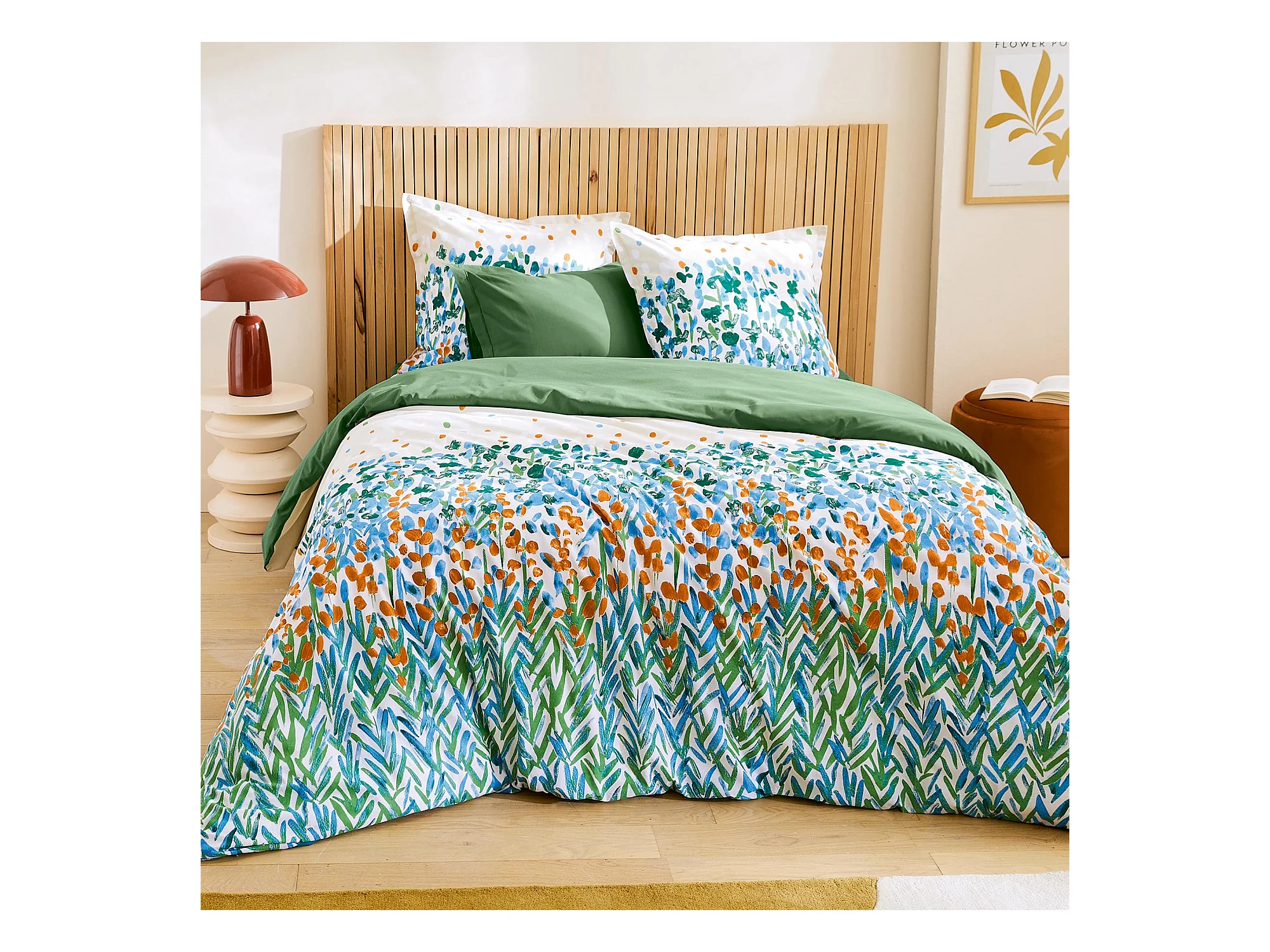 Parure 200x200 cm 50x70 cm coton ÉVASION Blanc vert 3 pièces