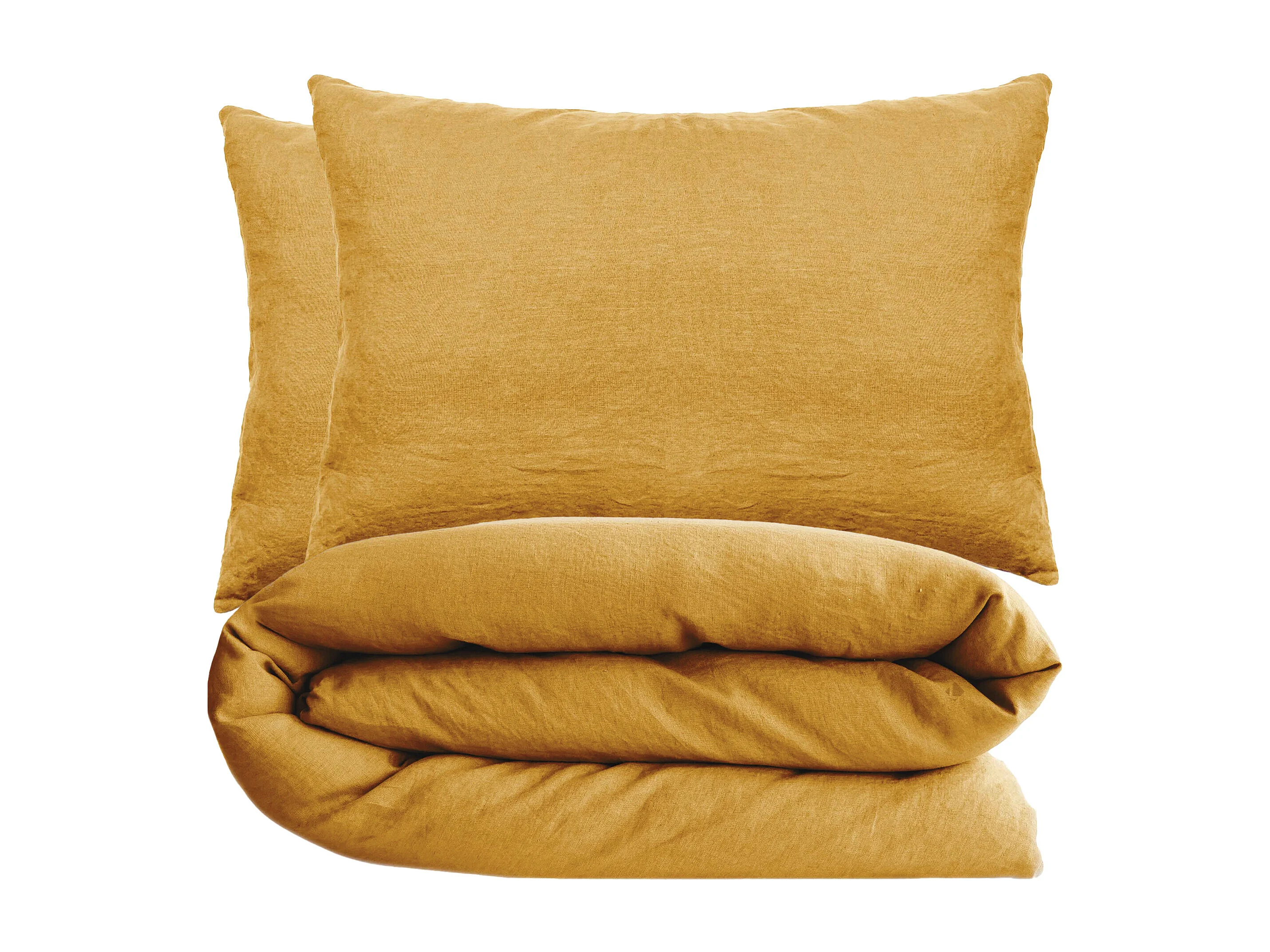 Parure de lit 140x200 cm et 50x70 cm coton lavé PALACE jaune curry 2 pièces