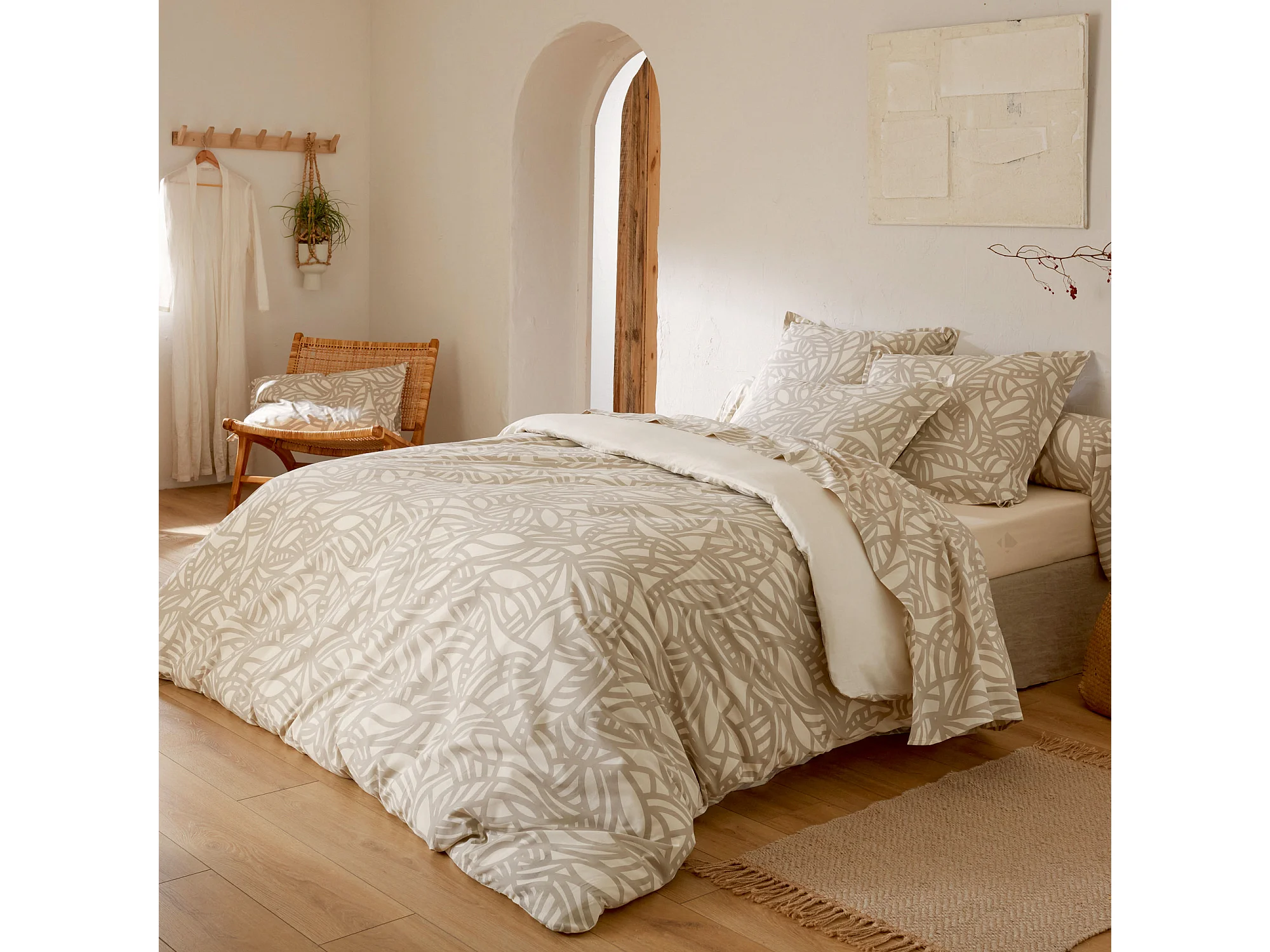 Parure de lit 200x200 cm 50X70 cm percale de coton PALAZZO beige 3 pièces