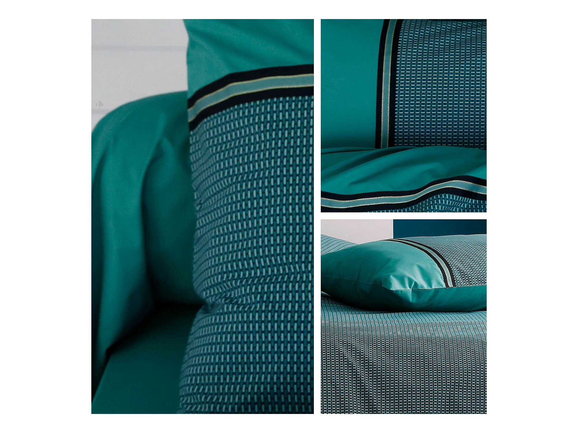 Parure de lit 200x200 cm 50x70 percale GUSTAV vert Emeraude 3 pièces