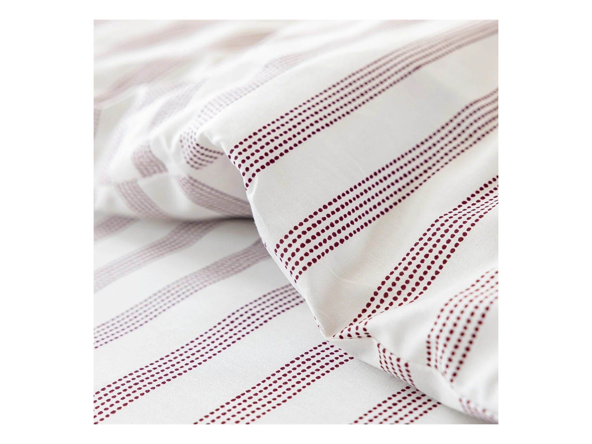Parure de lit 140x200 coton à rayures bordeaux Terre de Nuit Pointillé