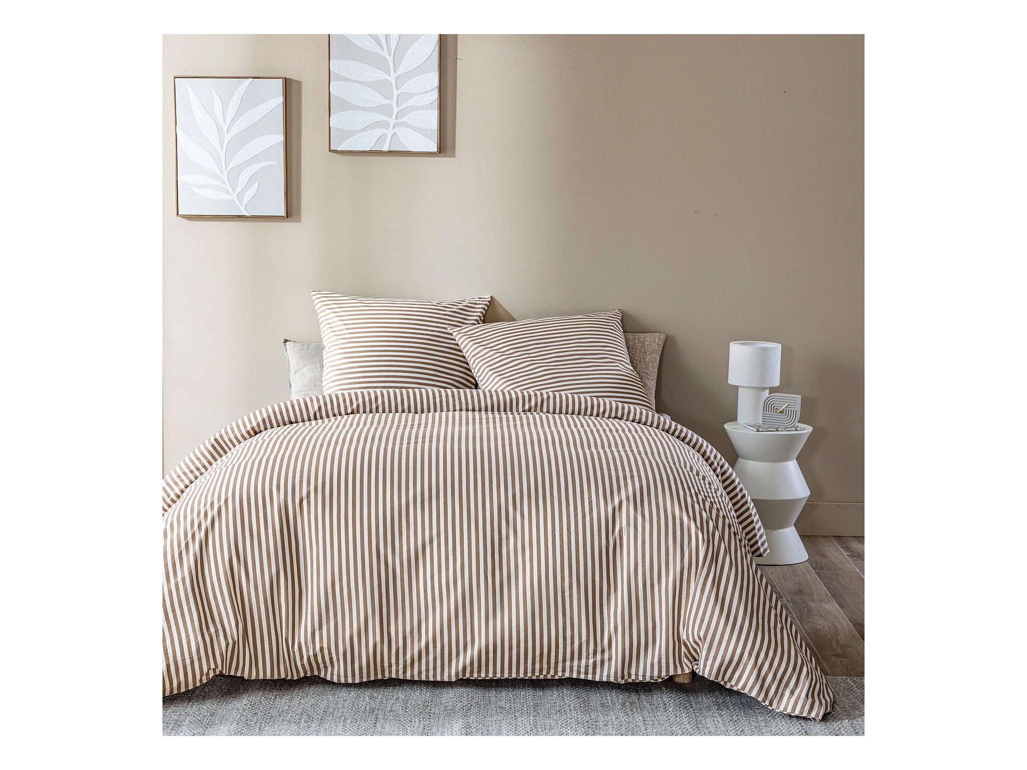 Parure de lit 260x240 coton à rayures marron Terre de Nuit Horizon