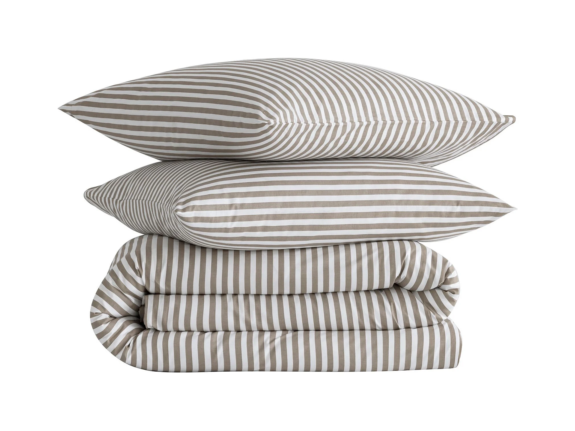 Parure de lit 140x200 coton à rayures taupe Terre de Nuit Horizon