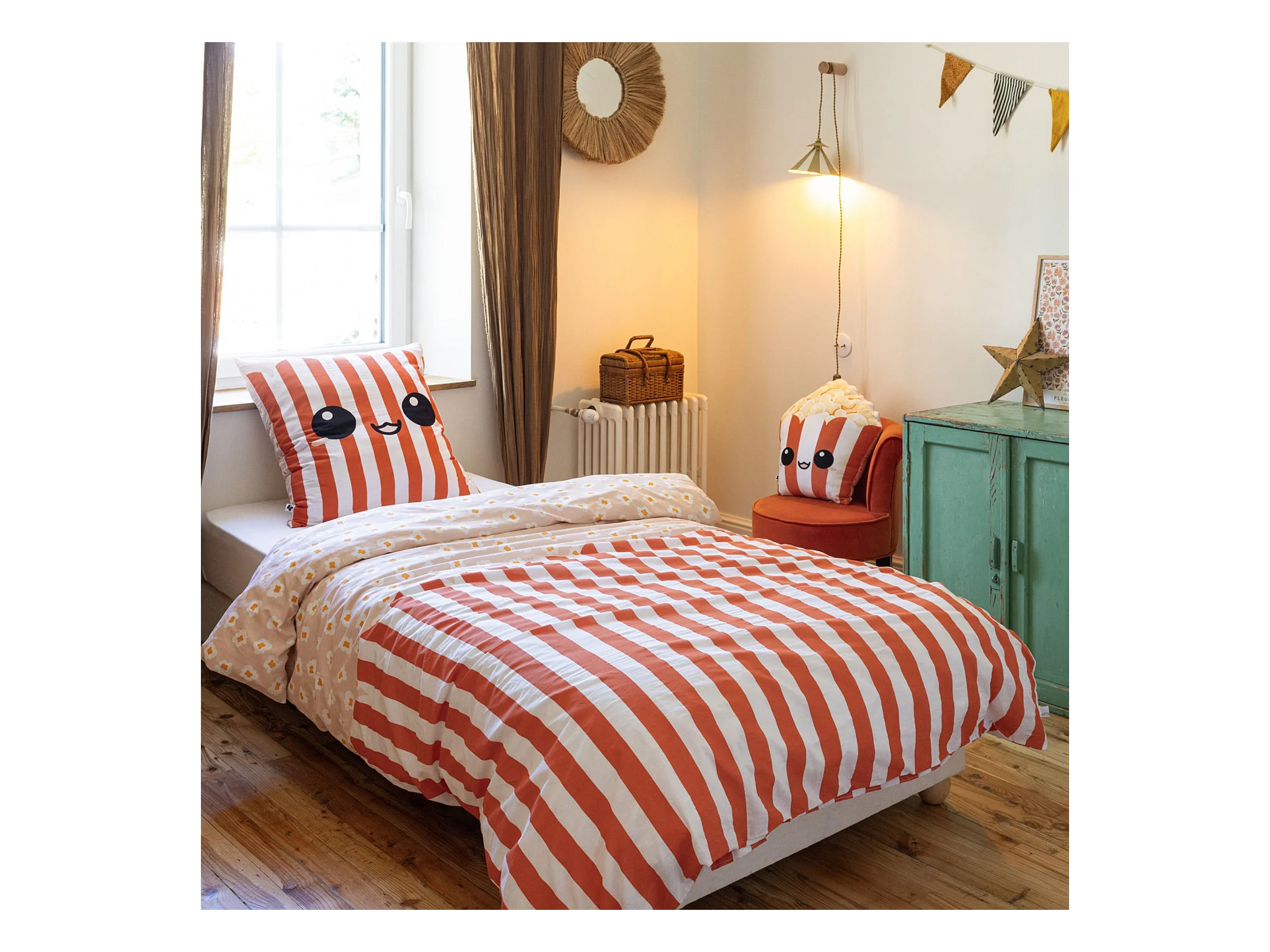 Parure de lit enfant 200x200 coton rayures Terre de Nuit Fresh popcorn
