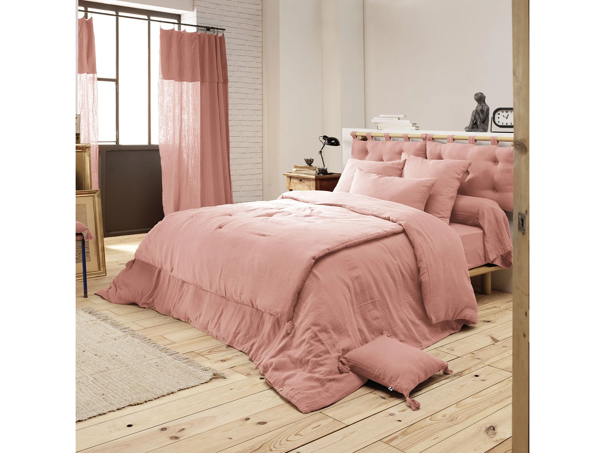 Parure de lit 240 x 260 cm en double gaze de coton rose - PEPA 2