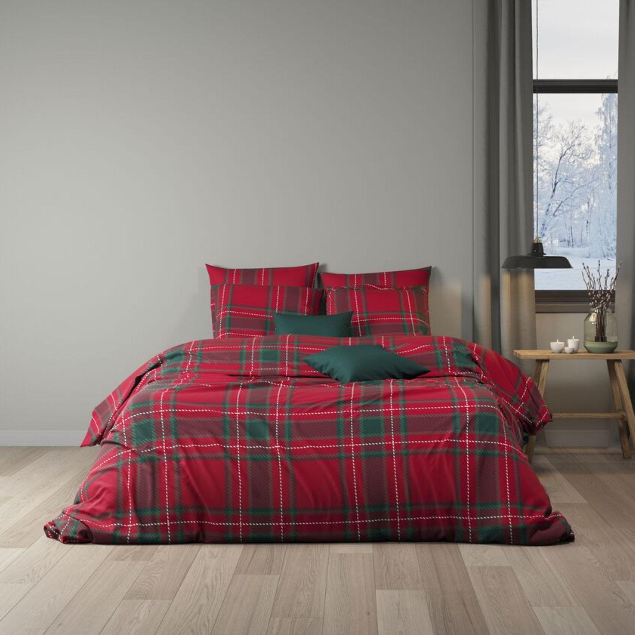 Parure de lit 200x200 flanelle à carreaux rouge Terre de Nuit Noël