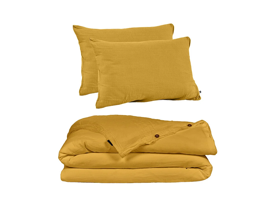 Parure de lit 240 x 260 cm en double gaze de coton jaune - PEPA 2