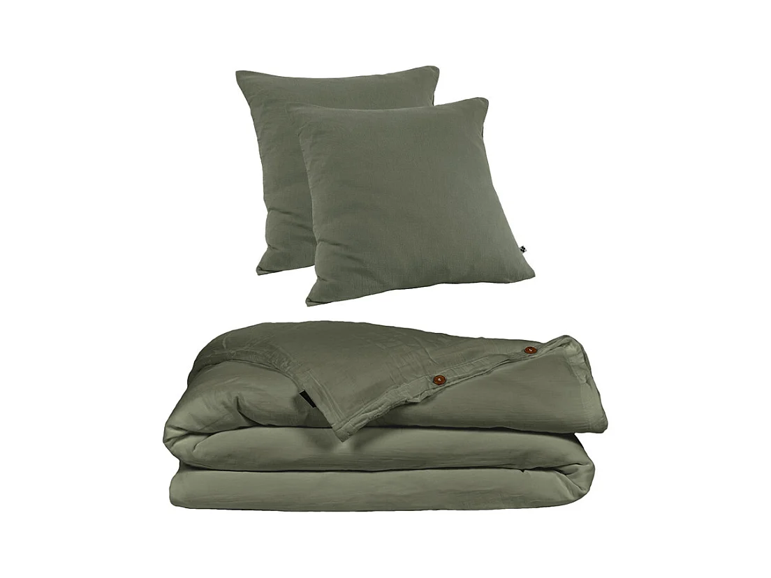 Parure de lit gaze de coton / coton kaki. 2 places. 1 housse de couette avec 2 taies d'oreiller 240 x 220 cm