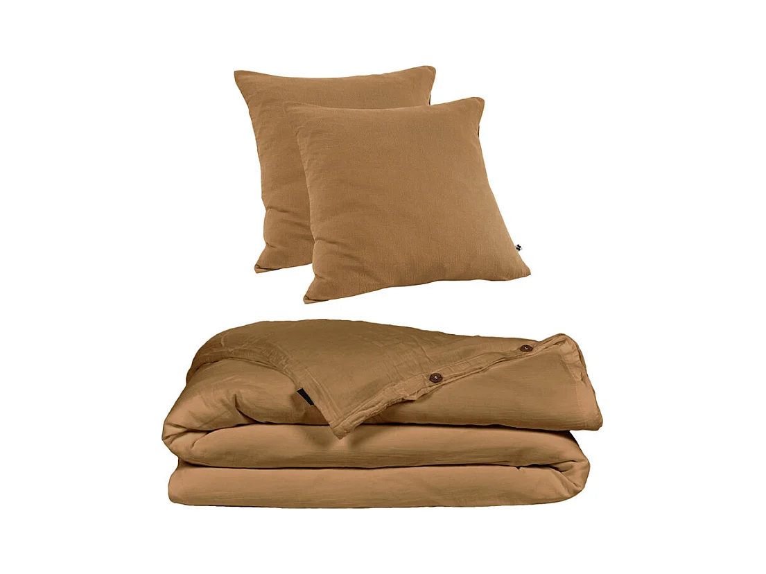 Parure de lit 220 x 240 cm en double gaze de coton camel - PEPA 1