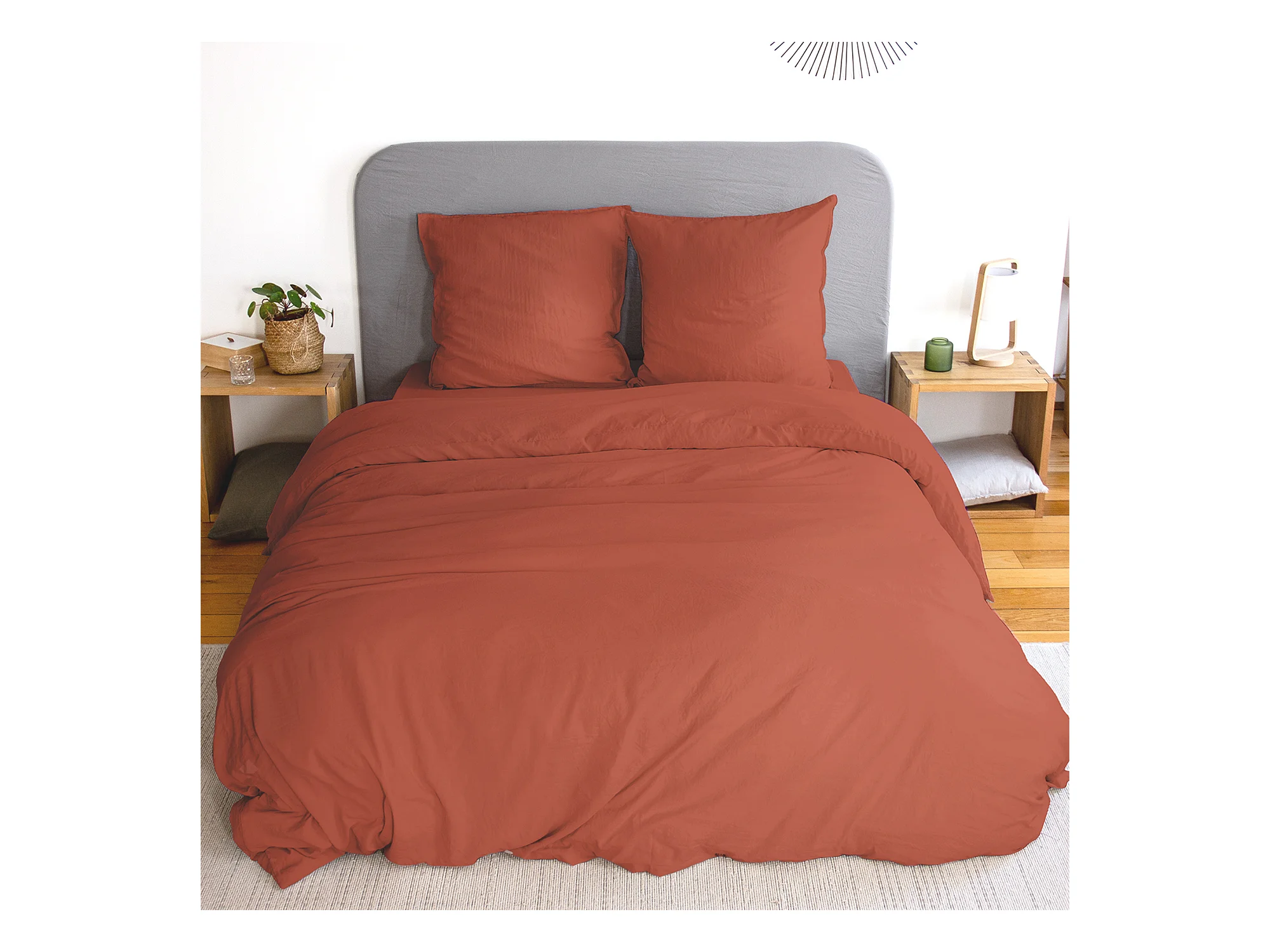 Parure 240x220 cm MILA polyester micro lavée rouge terracotta 3 pièces