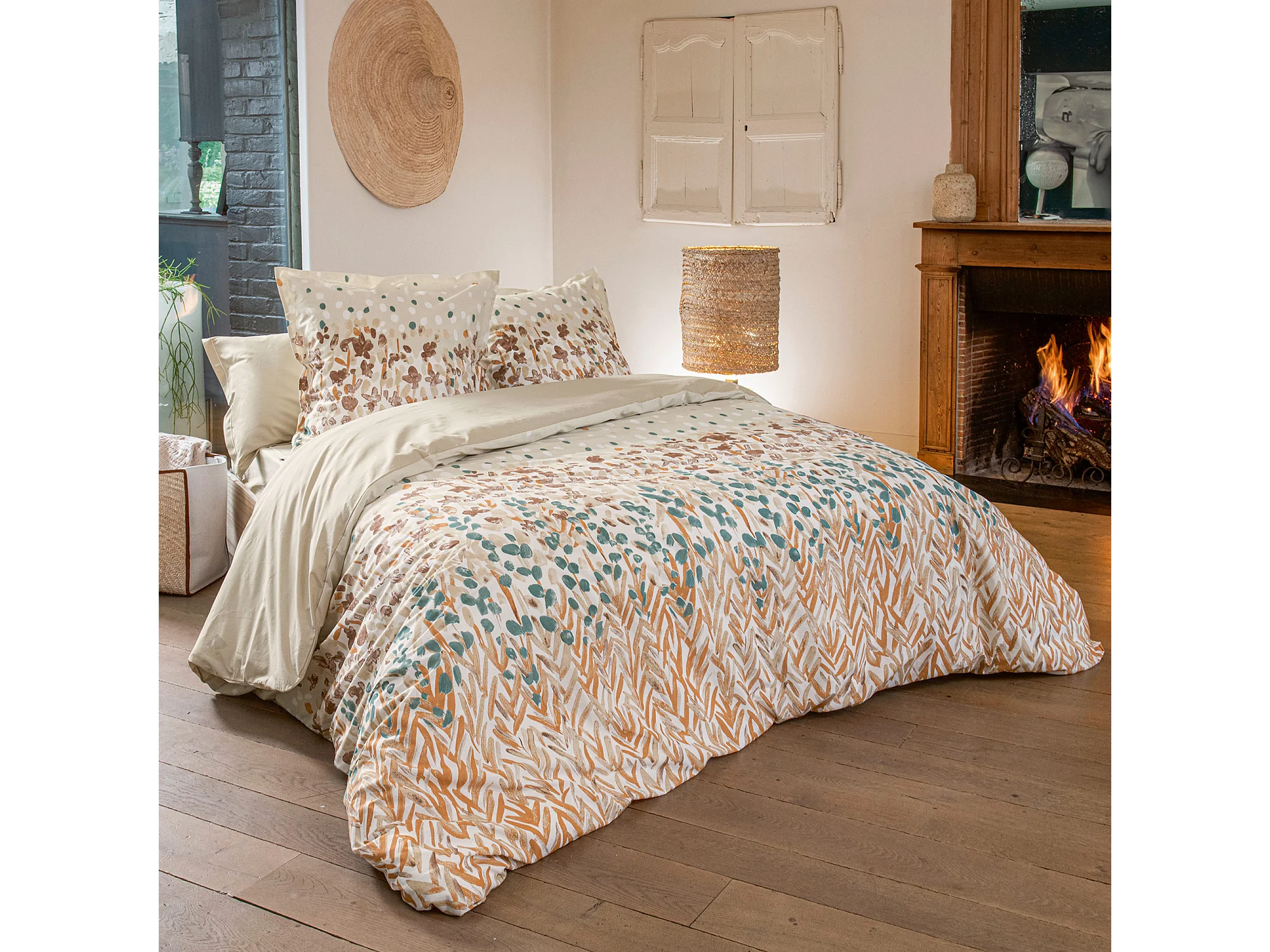 Parure de lit 240x220 cm 65x65 cm coton ÉVASION pêche 3 pièces