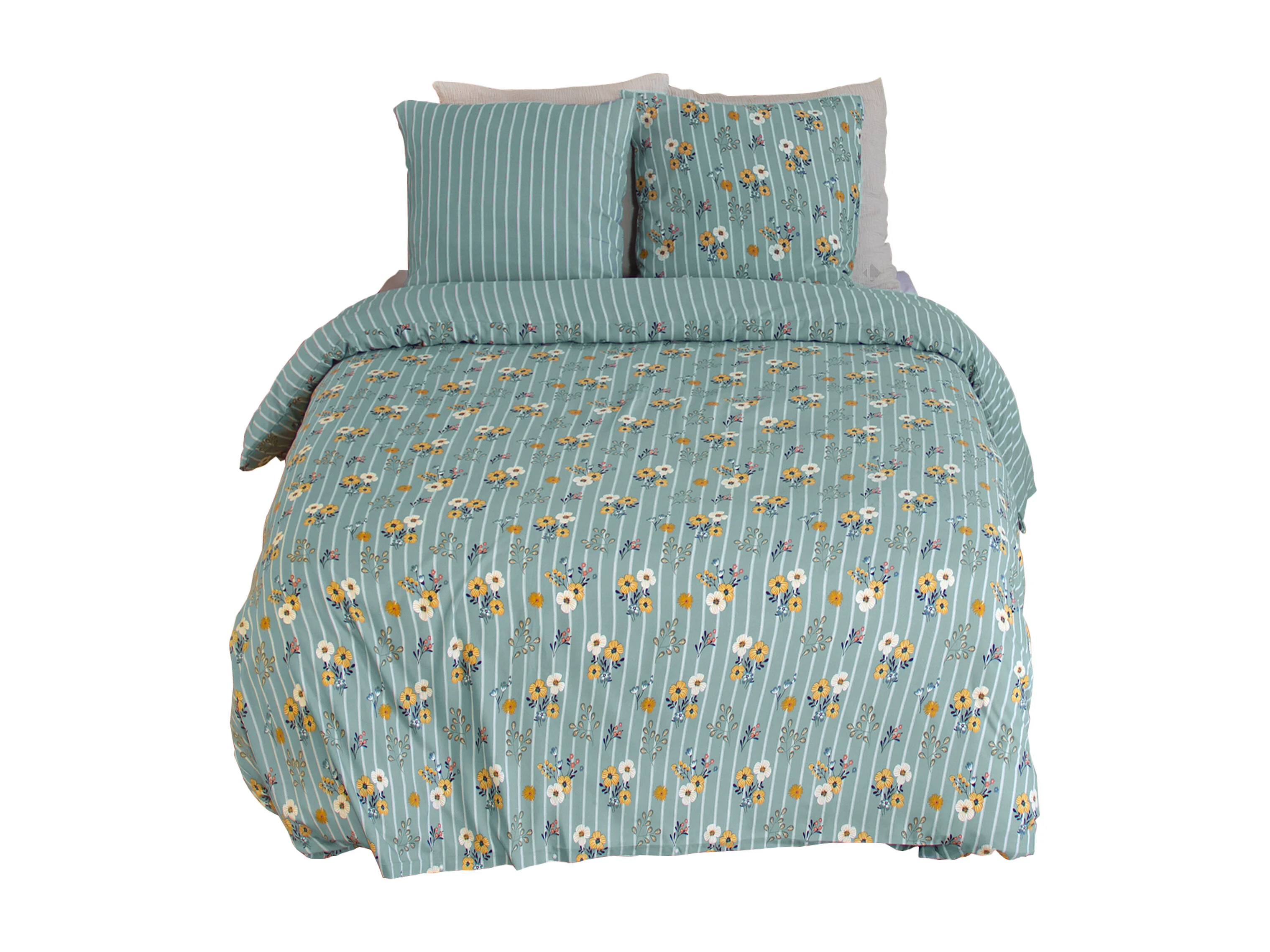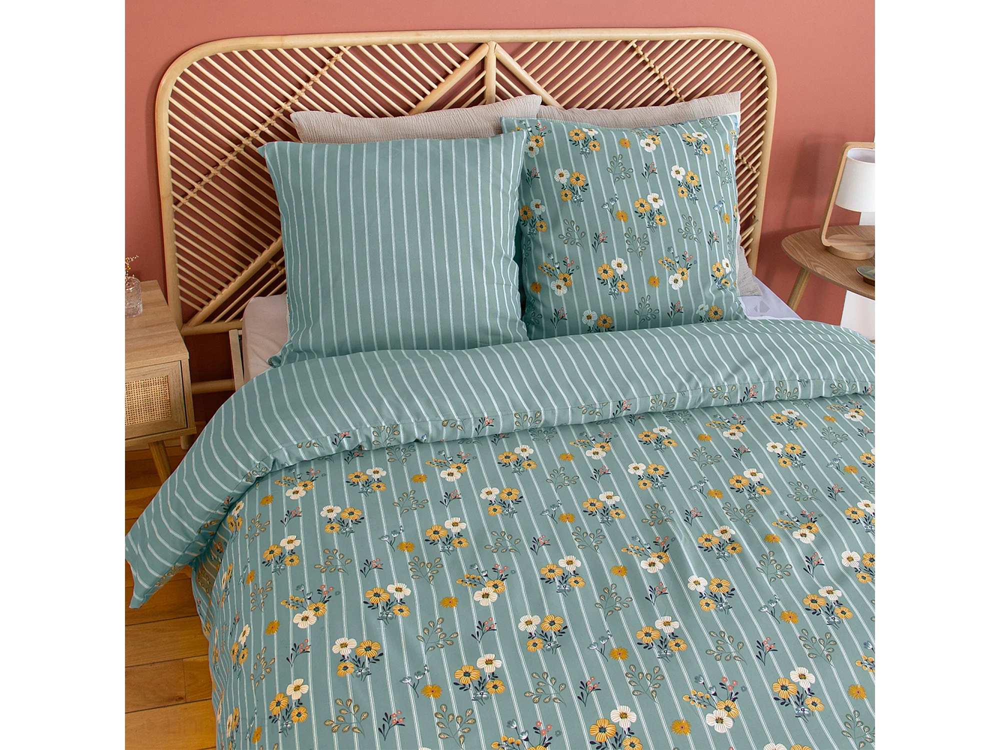 Parure de lit 260x240 cm microfibre CUEILLETTE vert 3 pièces