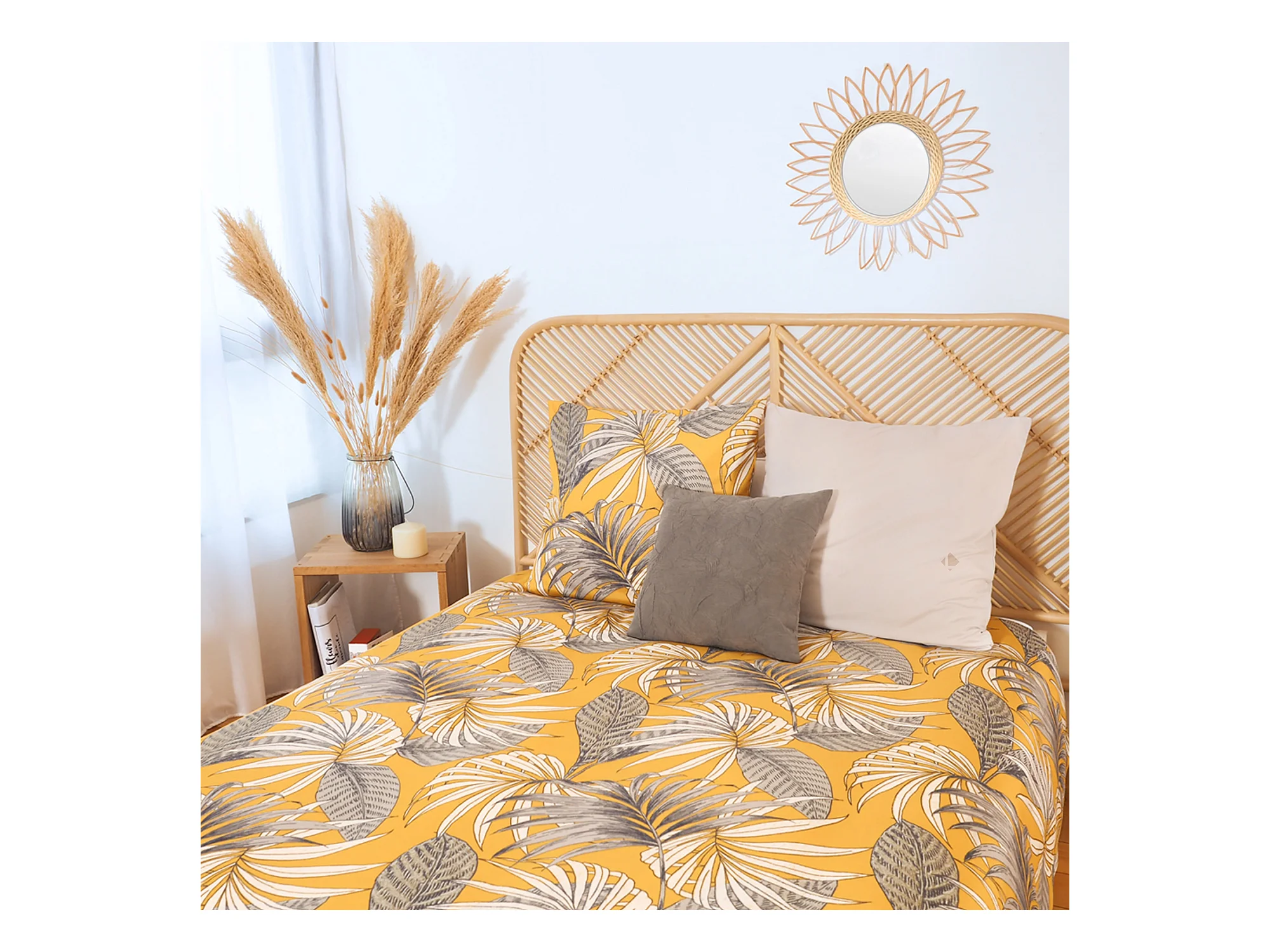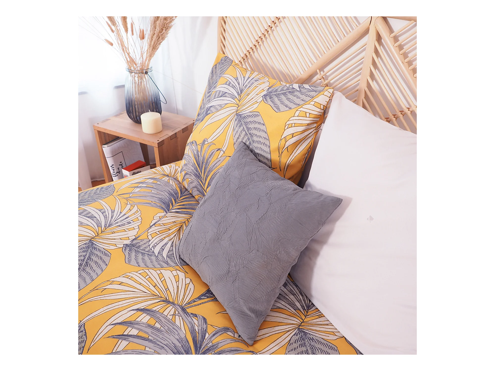 Parure de lit 220 x 240 cm en double gaze de coton jaune - PEPA 3